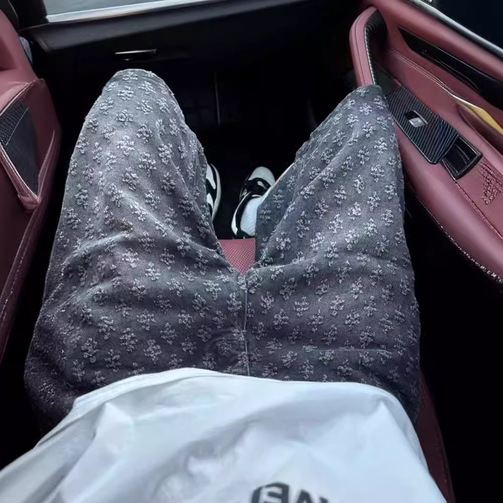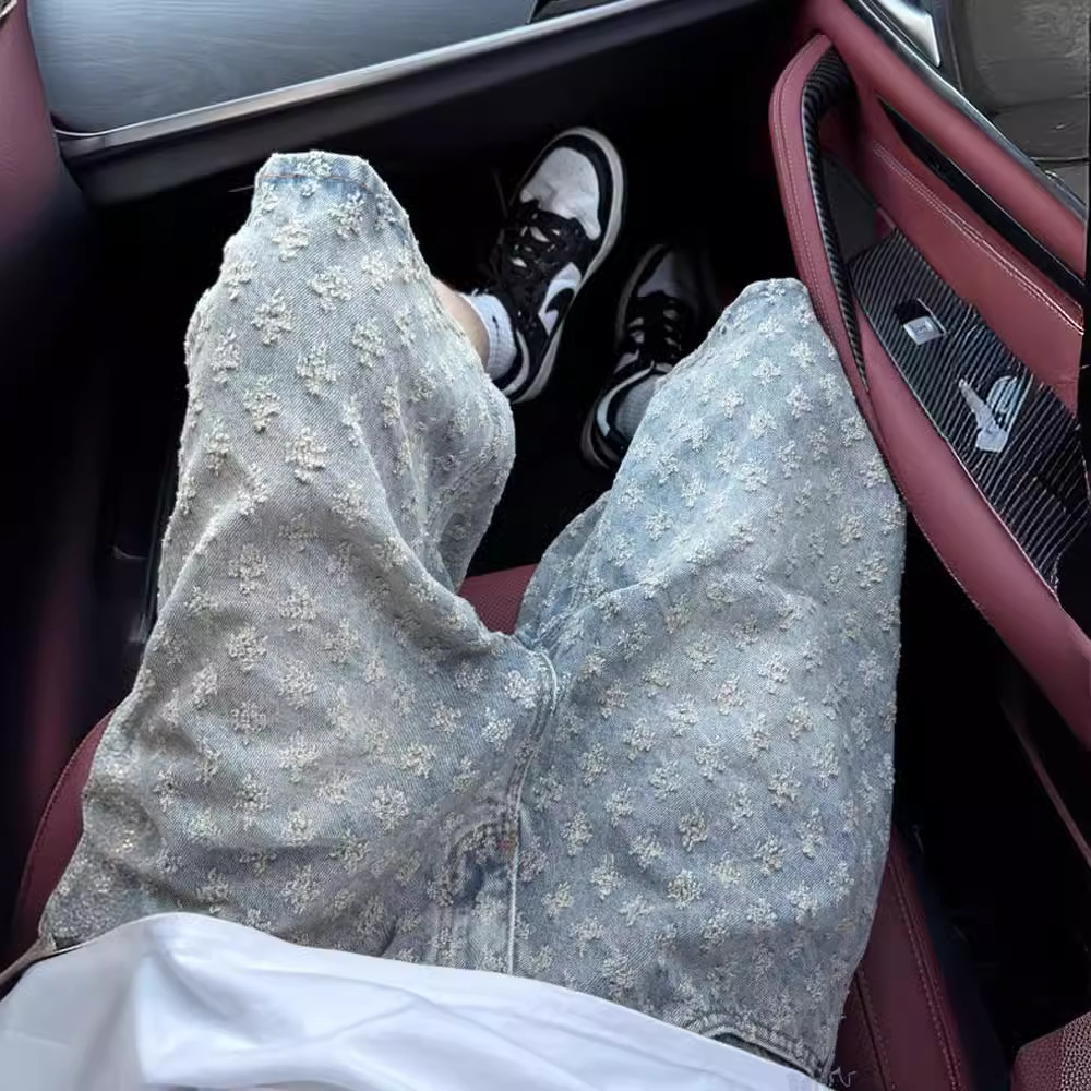 전체 인쇄 자카드 아메리칸 스타일 빈티지 데님 반바지 남성 여름 얇은 hiphop 바지 유행 브랜드 디자인 센스 바지스토어 가기