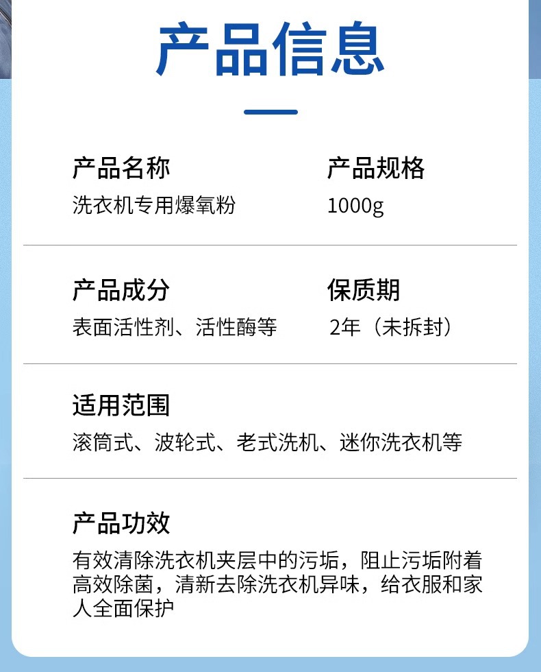 세탁기 폭발성 산소 분말 강한 descaling 살균 청소기 맥동기 드럼 특수 청소 얼룩 유물 분해없이