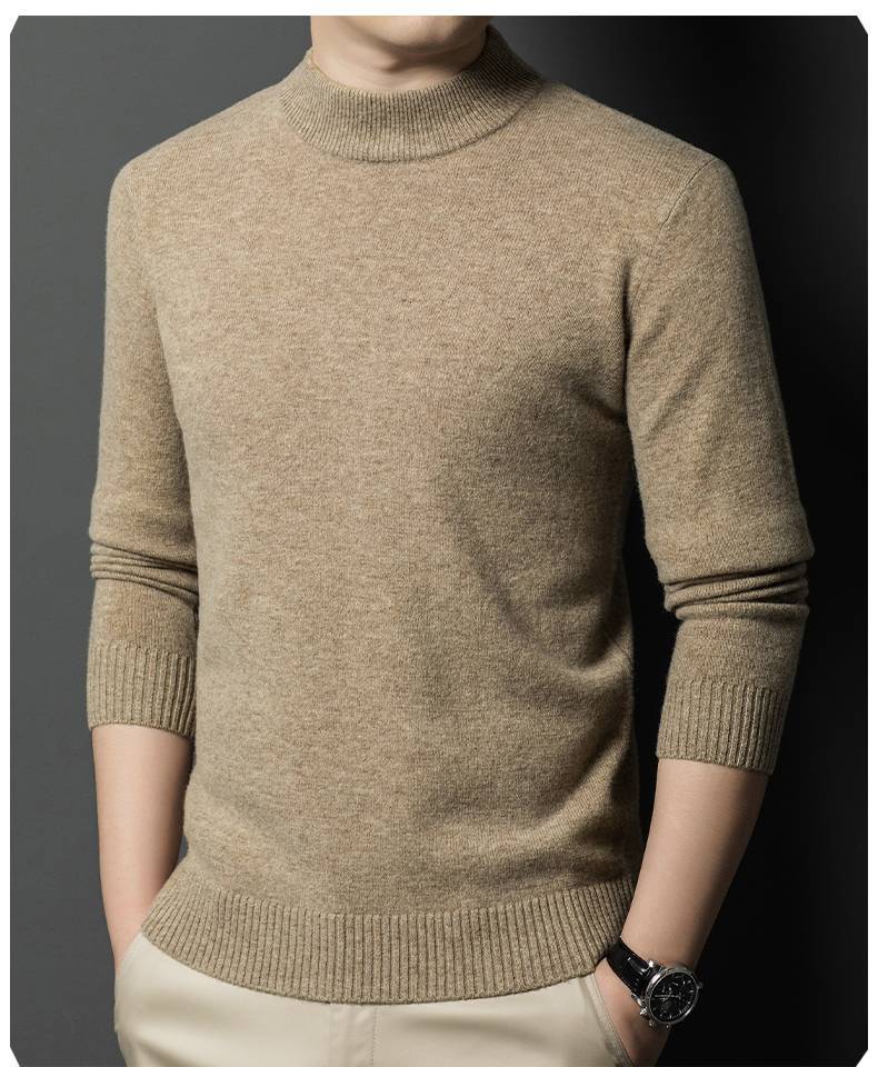 두꺼운 남자의 Puyuan 스웨터 하프 터틀넥 2024 가을/겨울 새로운 솔리드 컬러 플러스 사이즈 풀오버 스웨터 남자의 긴 소매