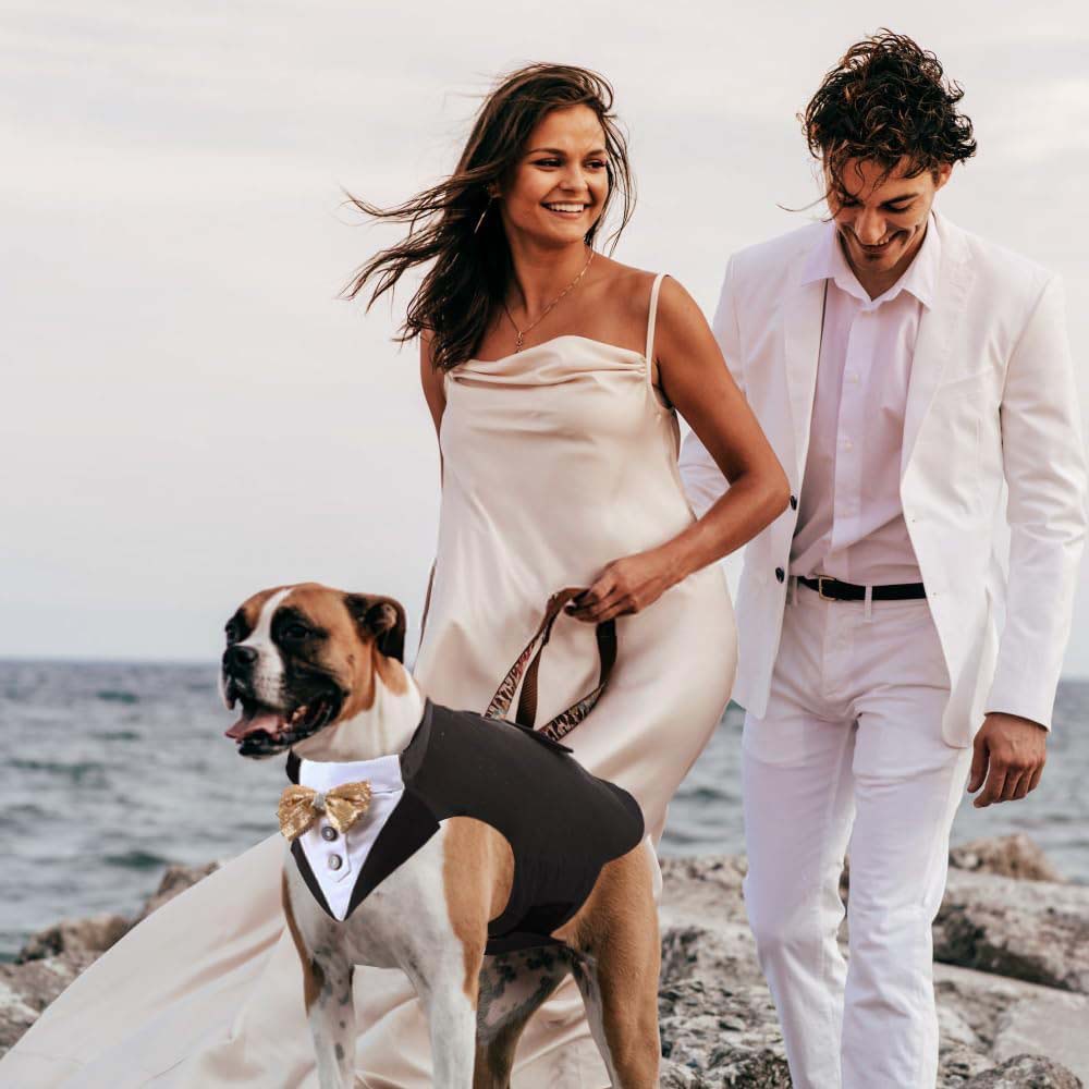 국경 간 재고 개 세트 애완 동물 옷 애완 동물 세트 조끼 결혼식 연회 애완 동물 결혼식 세트 삼각형 수건스토어 가기