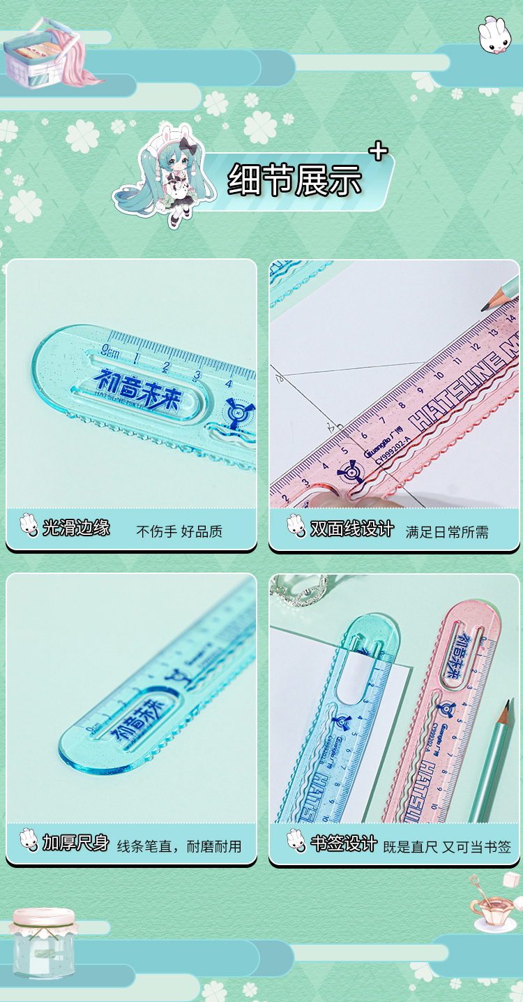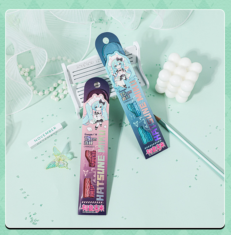 광보 새로운 하츠오 미래 15cm 통치자 학생 만화 투명 드로잉 통치자 문구 창조적 인 문구 선물스토어 가기