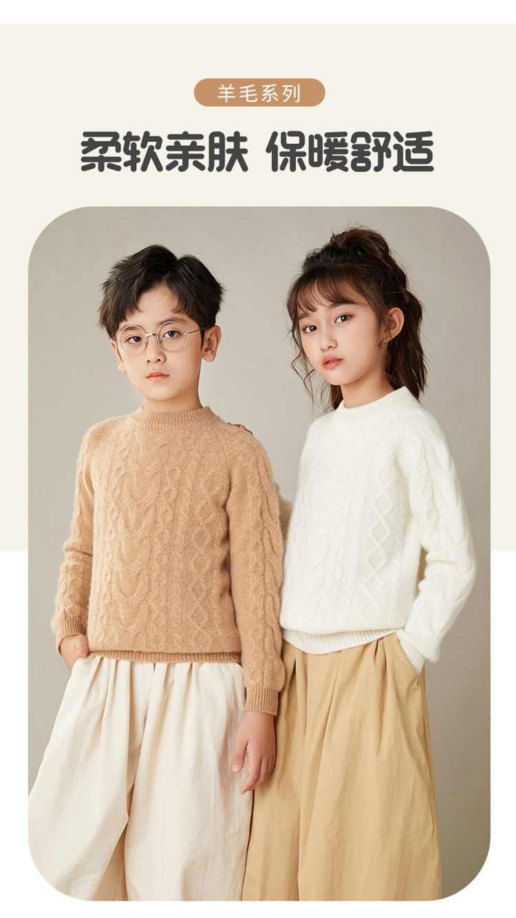 100 순수 양모 스웨터 미디 빅 키즈 아기 두꺼운 어린이 울 스웨터 소년 소녀 하프 터틀넥 터틀넥 스웨터