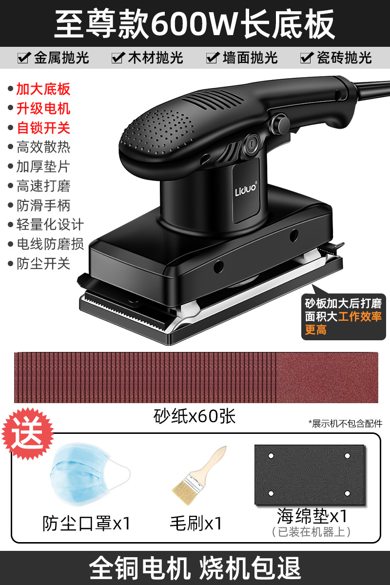• [익스트림 600W 롱 베이스 플레이트] 사포 30장 + 방진마스크 + 브러쉬