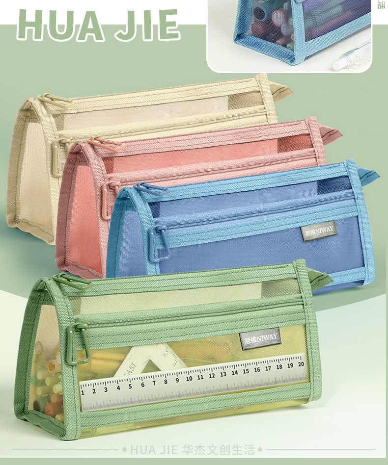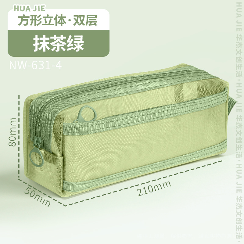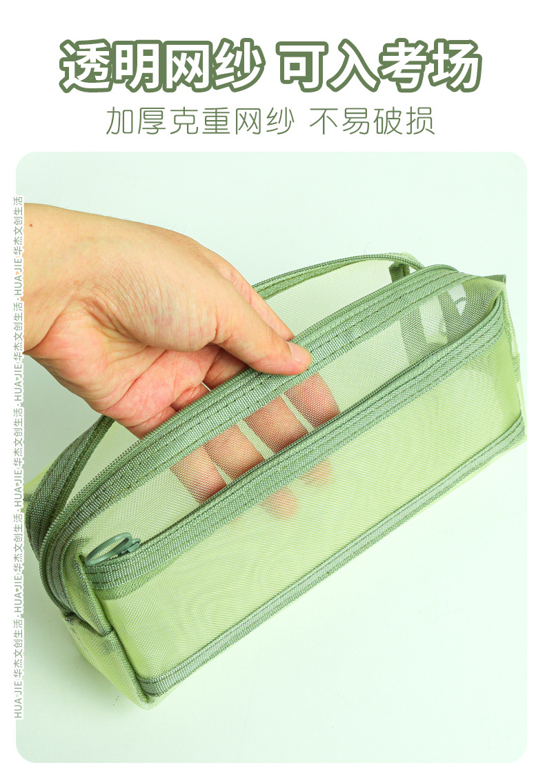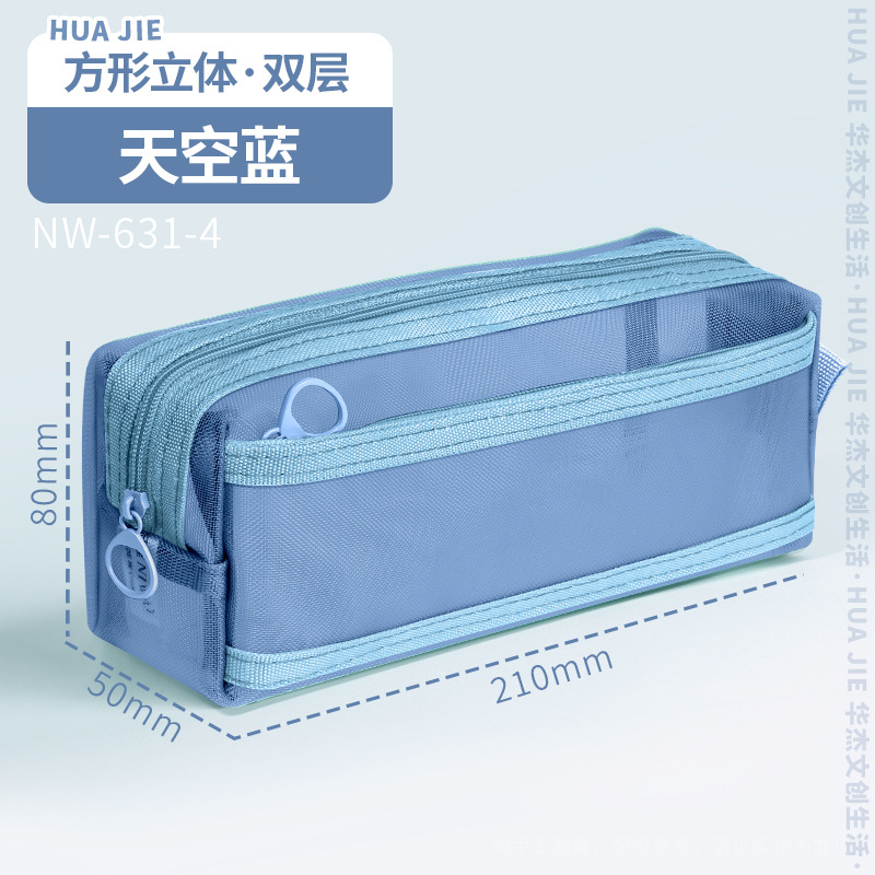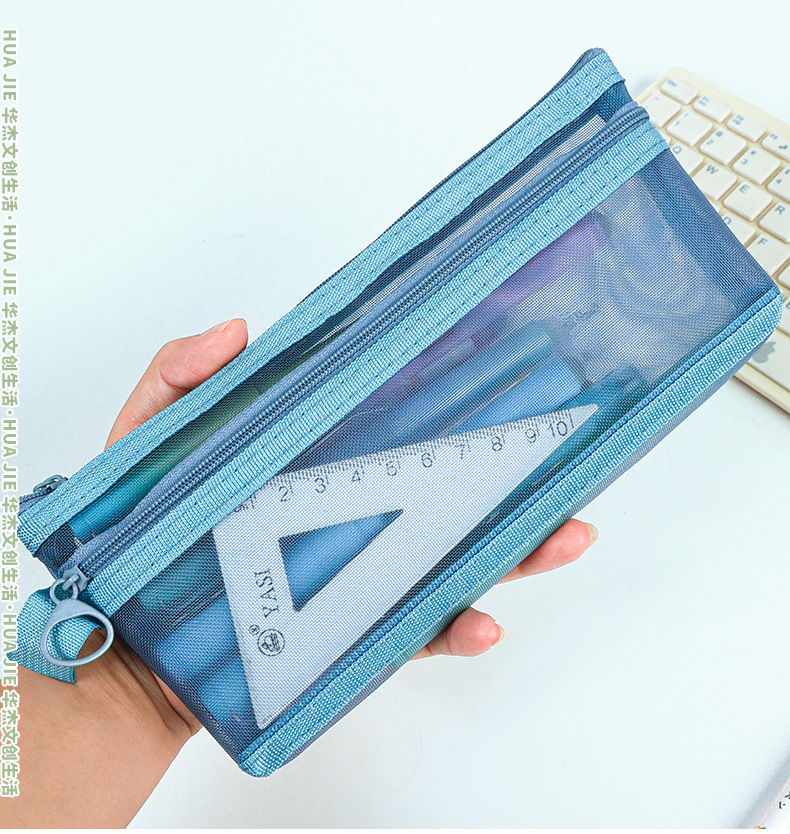 더블 레이어 대용량 연필 케이스 Ins 높은 값 간단한 투명 메쉬 연필 케이스 스퀘어 3 차원 다층 문구 가방