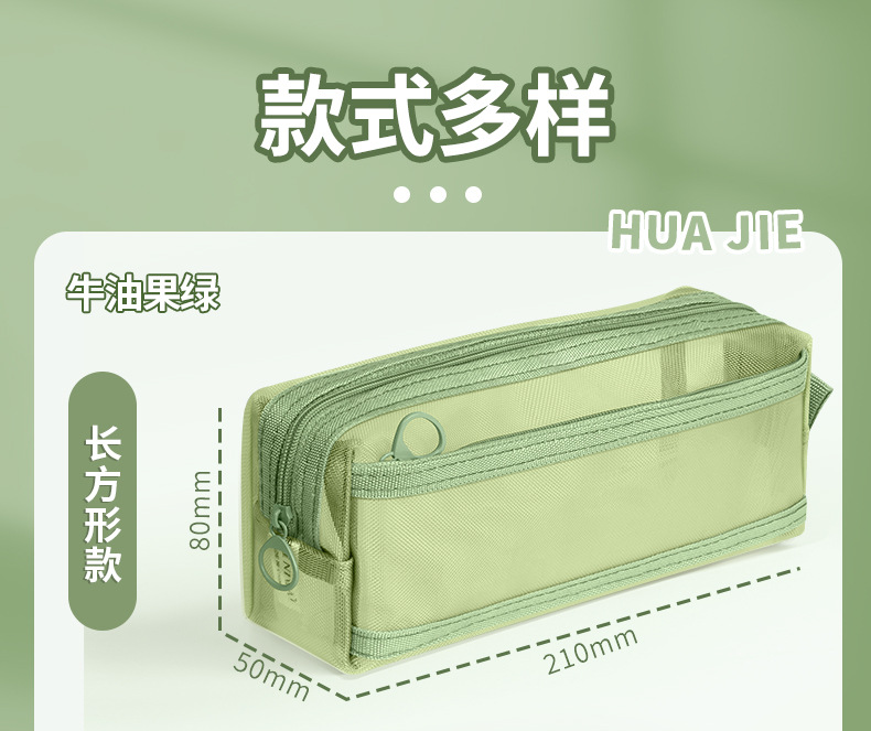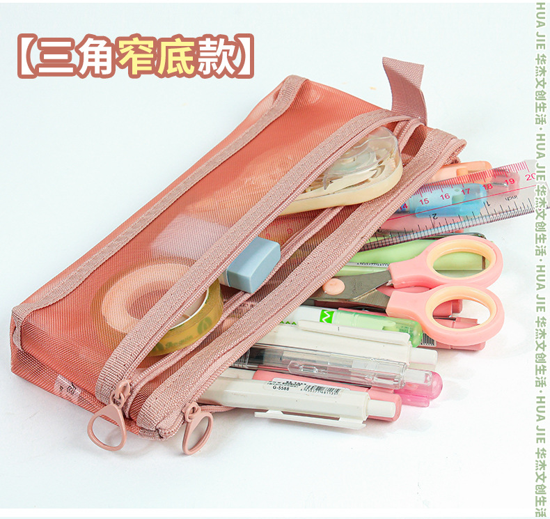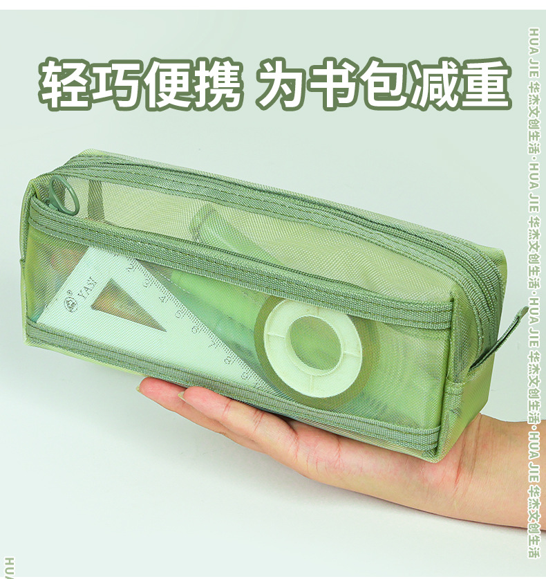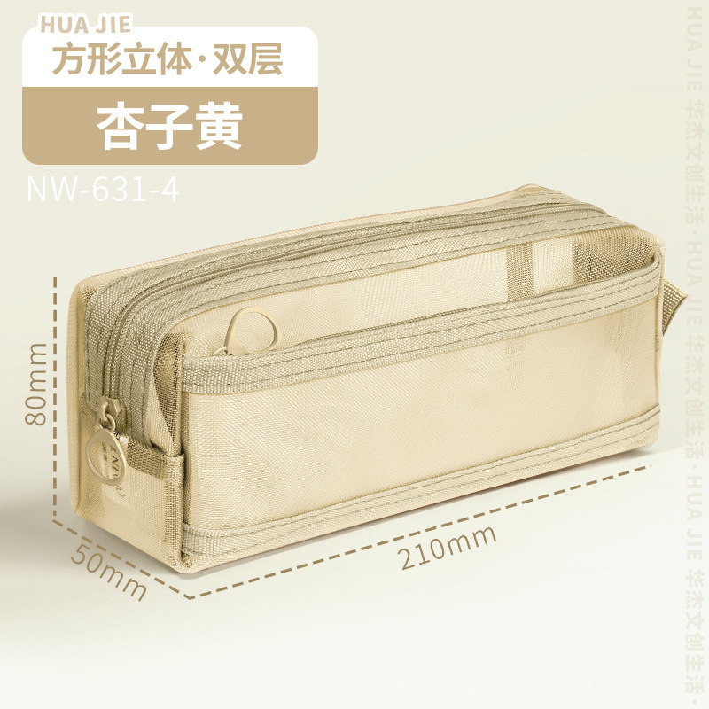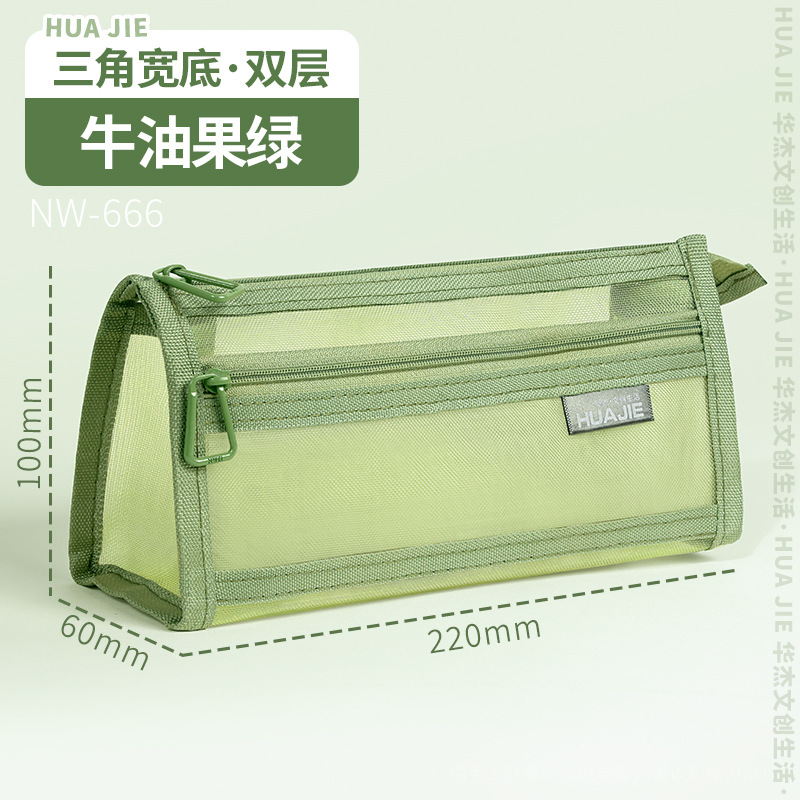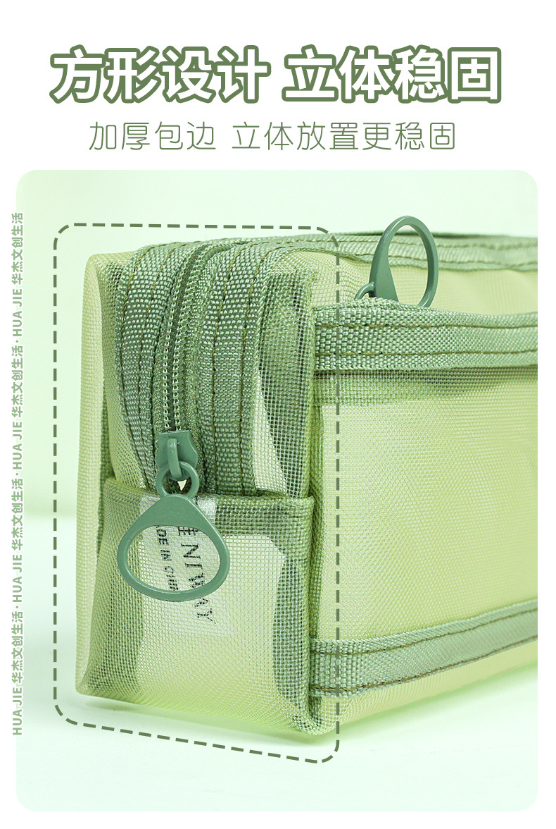 더블 레이어 대용량 연필 케이스 Ins 높은 값 간단한 투명 메쉬 연필 케이스 스퀘어 3 차원 다층 문구 가방