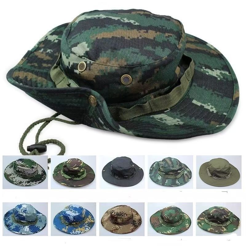 야외 위장 라운드 엣지 베니 모자 햇살 어부 모자 등산 낚시 모자 접이식 차 따기 군사 팬 선 스크린 모자