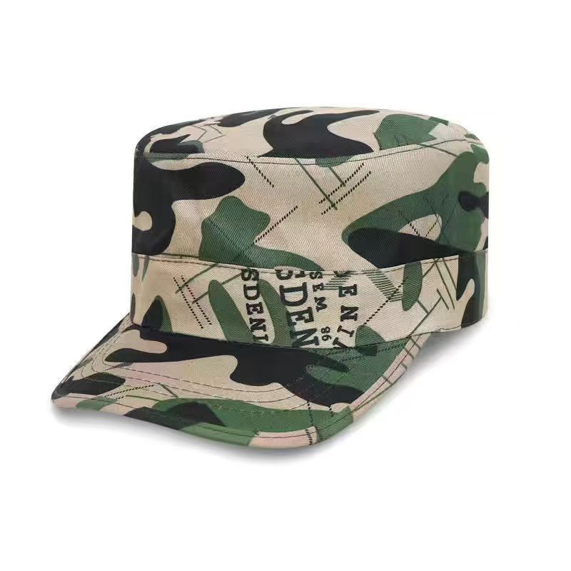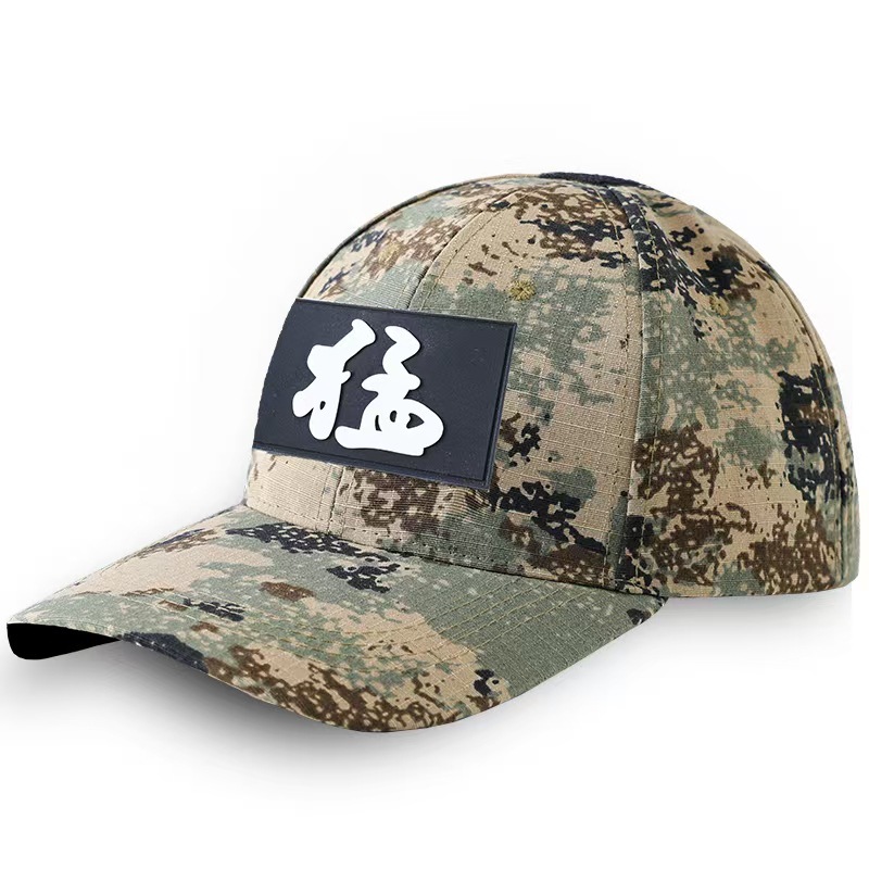 • 라벨이 있는 녹색 위장 꽃 모양의 피크 캡