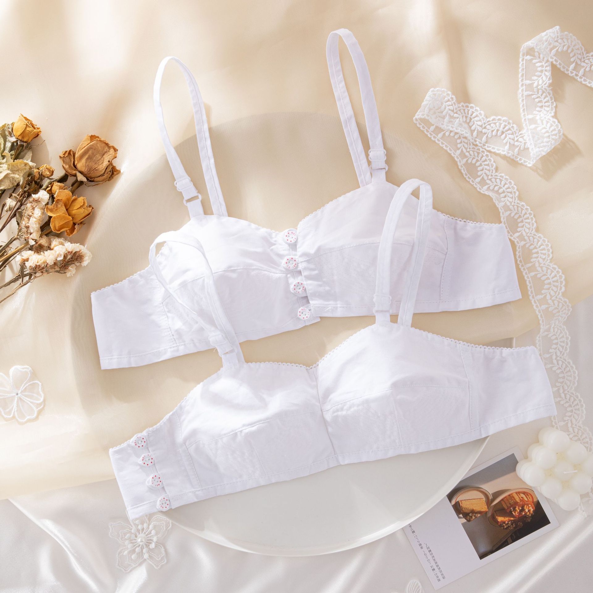 엄마를 위해 얇은 브래지어를 플러스 사이즈 강철 고리가없는 중년 및 노인 앞 버클 용 구식 흰색면 앞 버클 브라스토어 가기