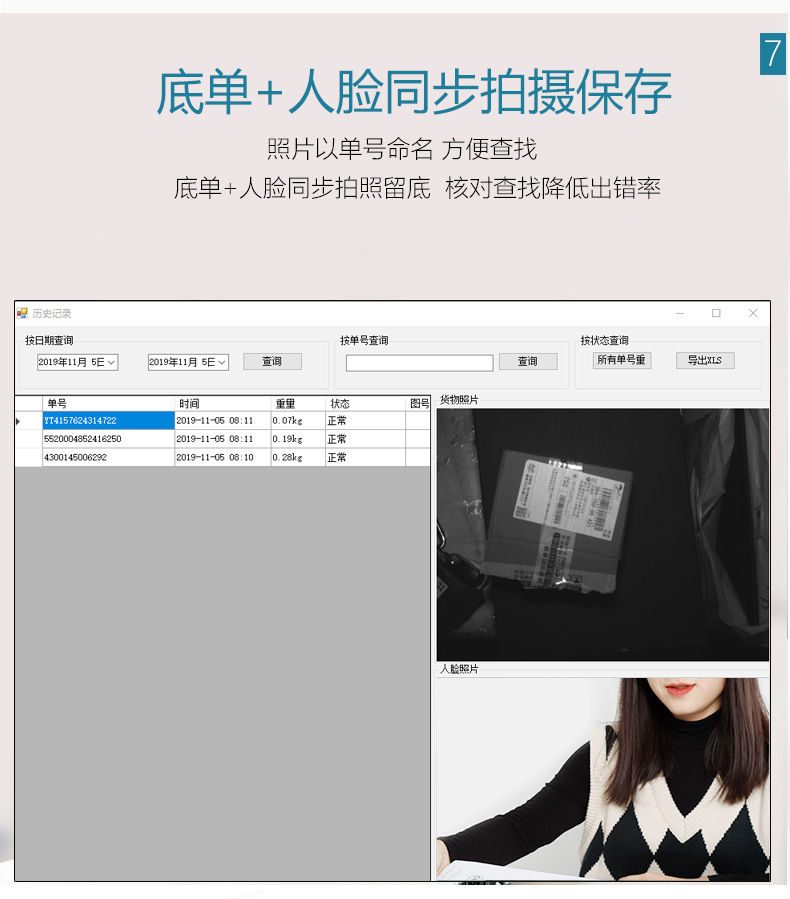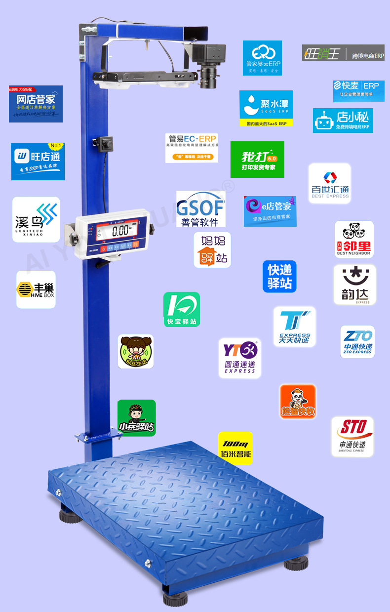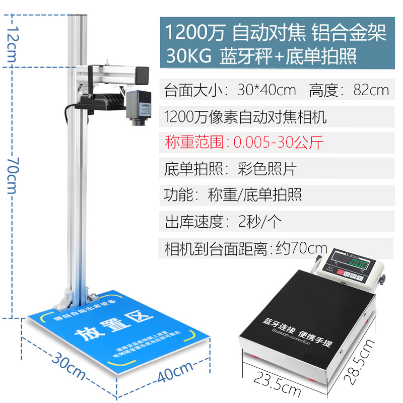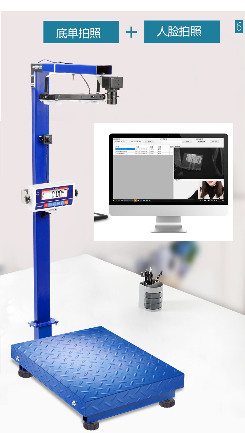 단일 번호의 무게를 기록하기 위해 사진을 찍는 카메라와 전자 저울 비디오 전자 상거래 배달 높은 샷 조정을 창고 밖으로 반환