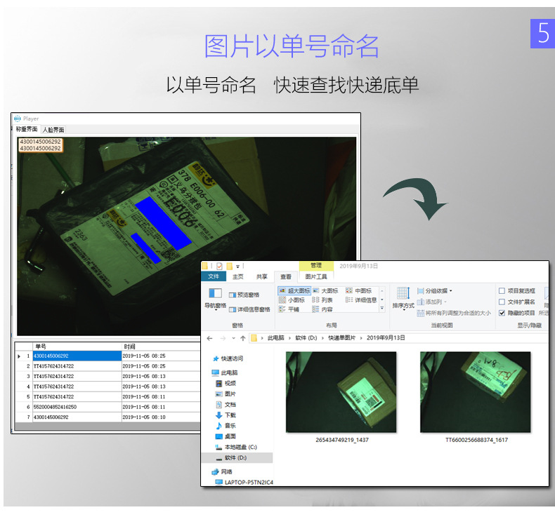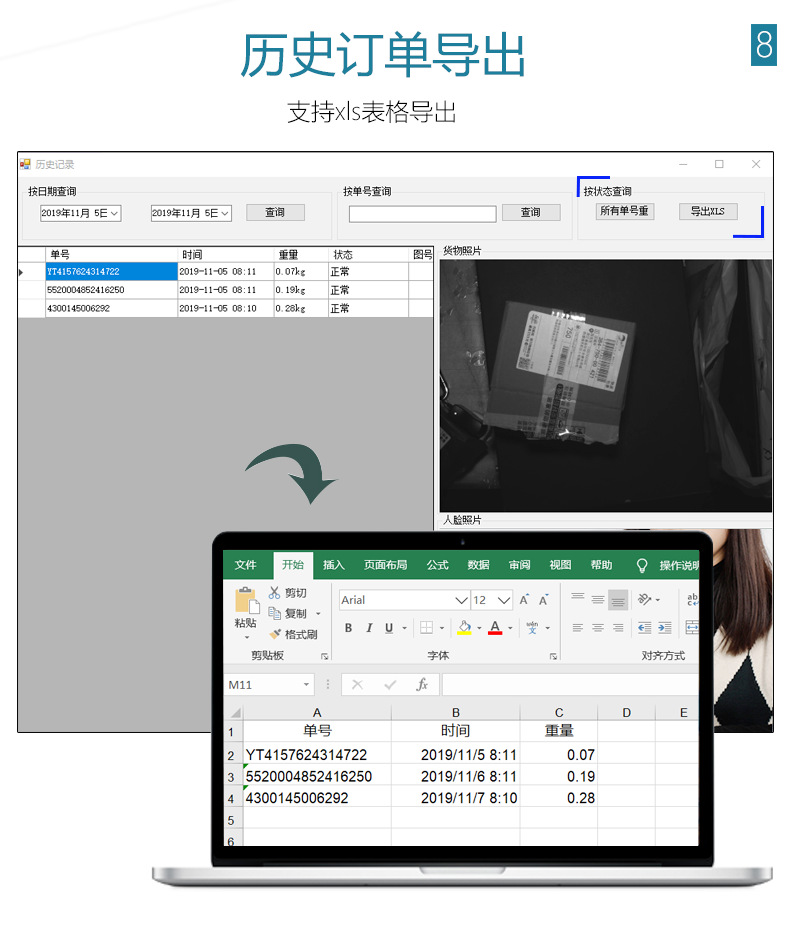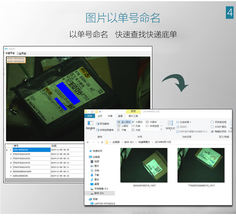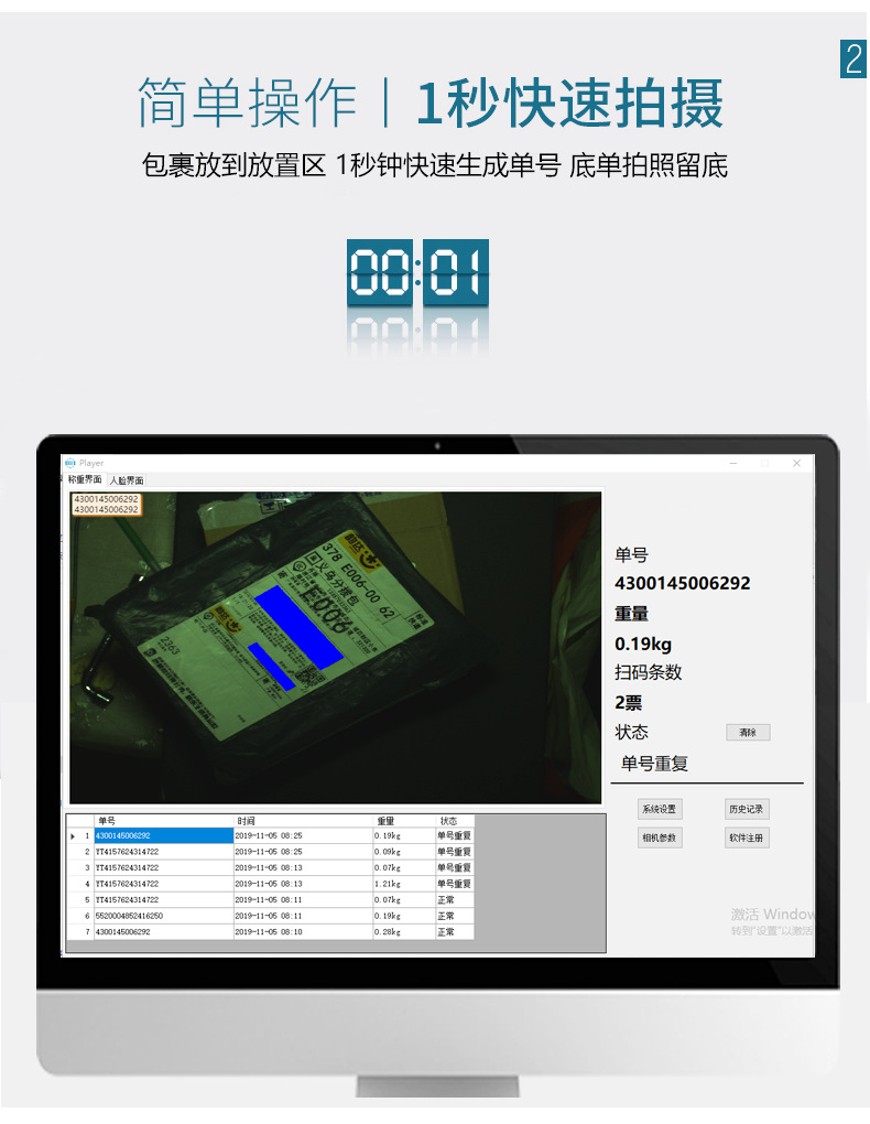 단일 번호의 무게를 기록하기 위해 사진을 찍는 카메라와 전자 저울 비디오 전자 상거래 배달 높은 샷 조정을 창고 밖으로 반환