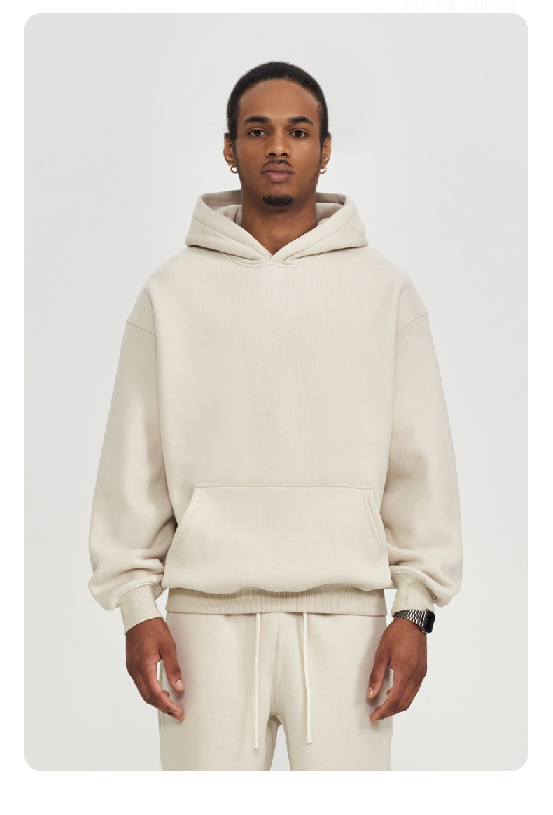 가을, 겨울 2025 미국 유행 브랜드 후드 티셔츠 솔리드 컬러 벨벳 두꺼운 십대 남성 정장 루즈 캐주얼스토어 가기