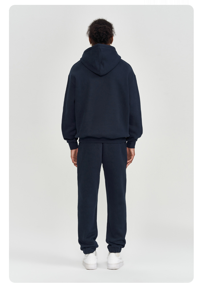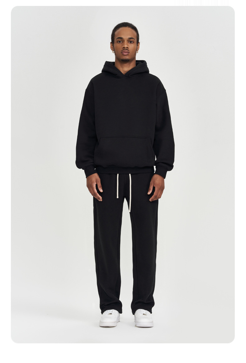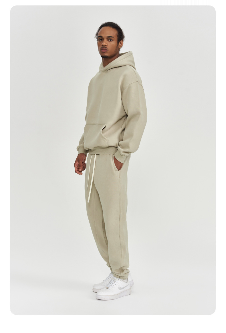 가을, 겨울 2025 미국 유행 브랜드 후드 티셔츠 솔리드 컬러 벨벳 두꺼운 십대 남성 정장 루즈 캐주얼