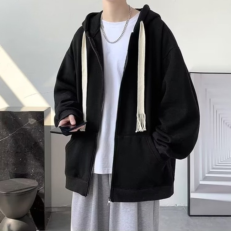 인터넷 빨간 밧줄 후드 카디건 스웨터 남자의 봄과 가을 유행 디자인 센스 틈새 오버 사이즈 코트 옷스토어 가기