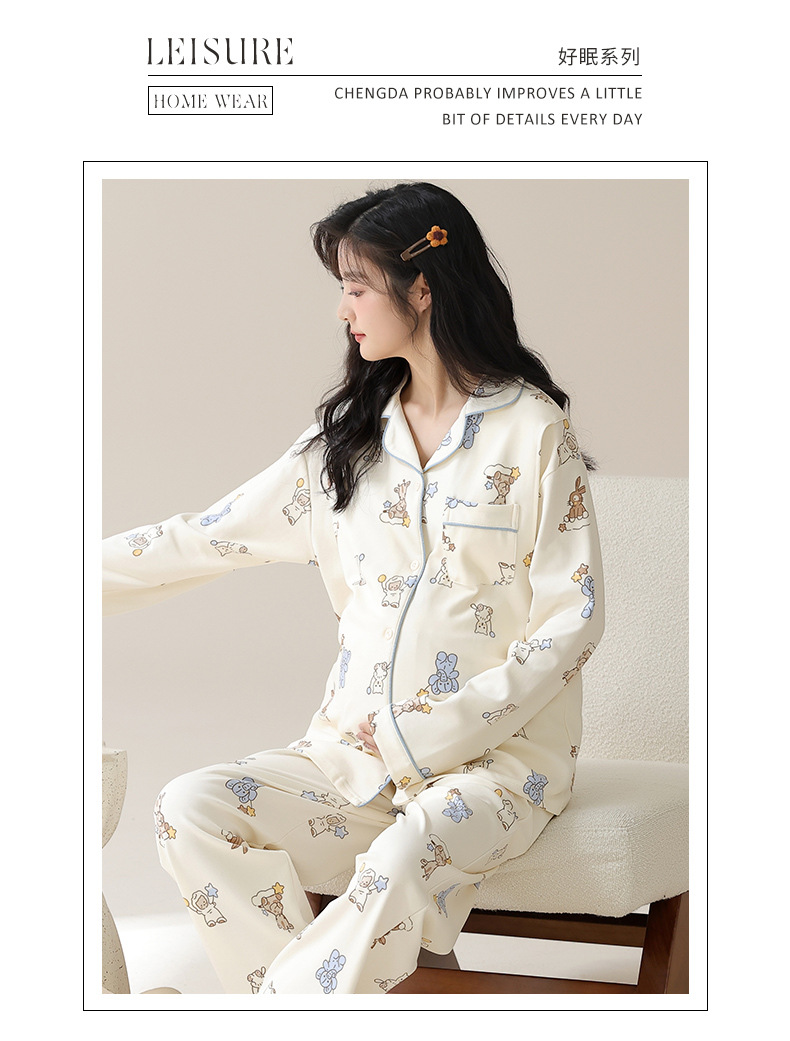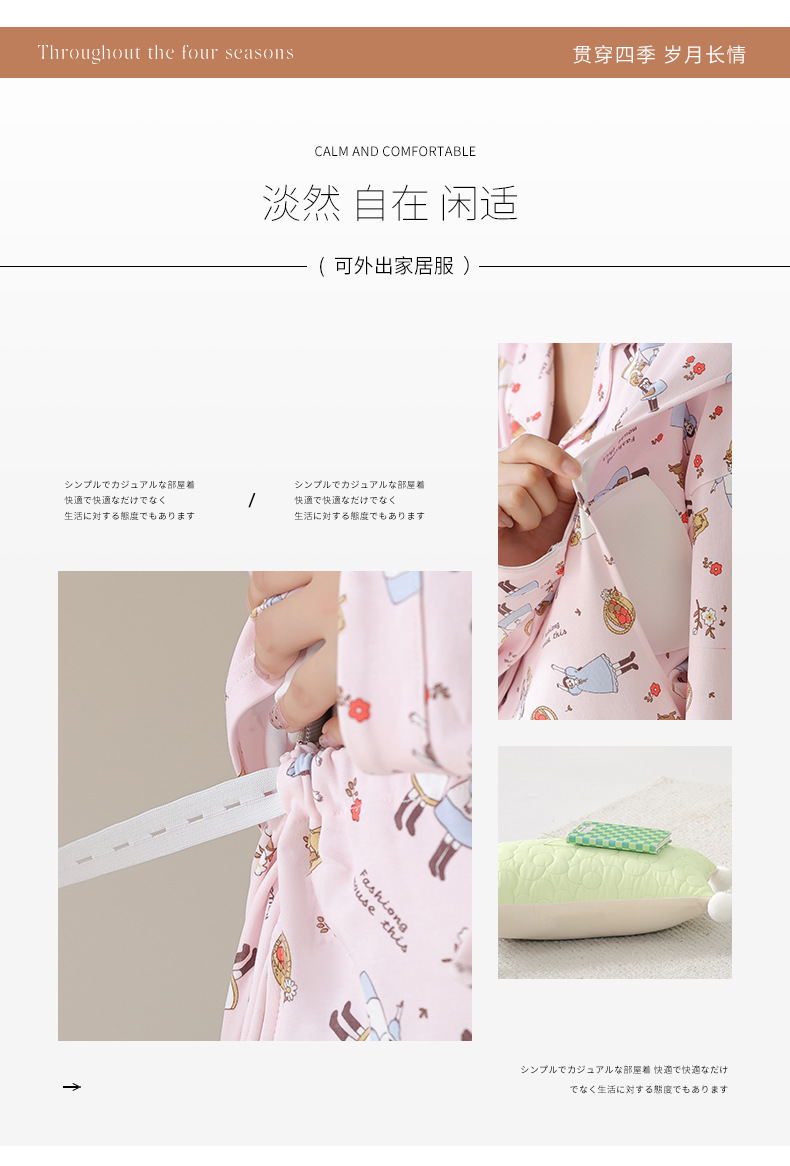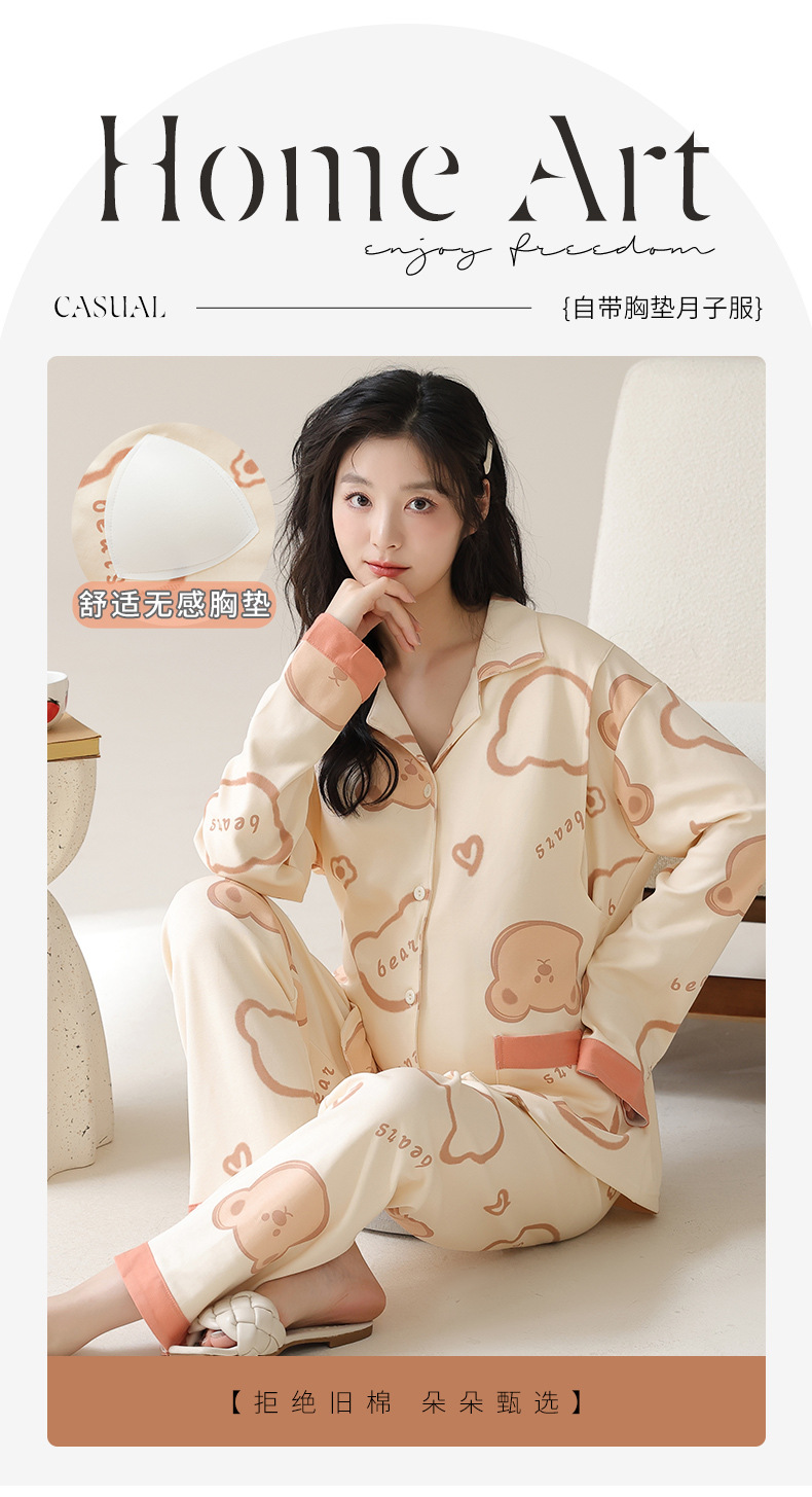 가슴 패드와 함께 목욕 수면 임신 여성 잠옷 여성의 긴 소매 모조 면 산전 및 산후 모유 수유 특수 문 옷 도매스토어 가기