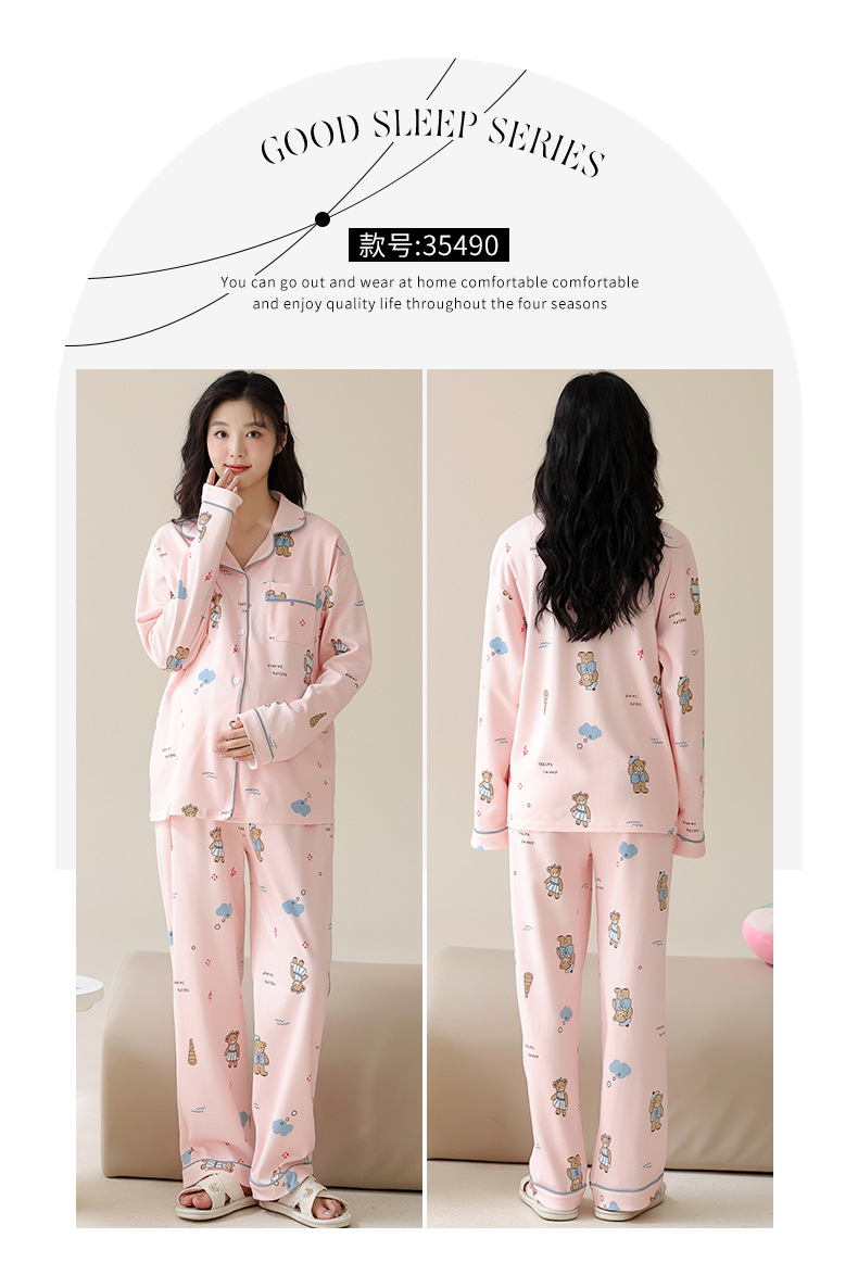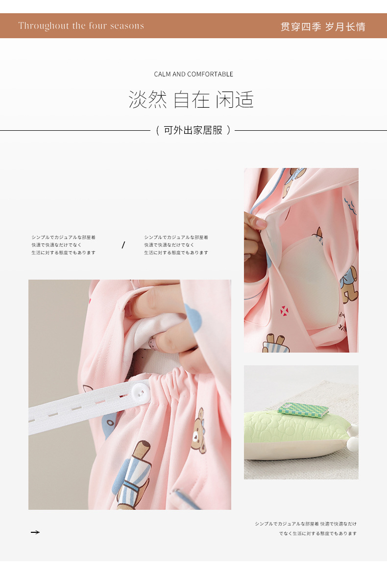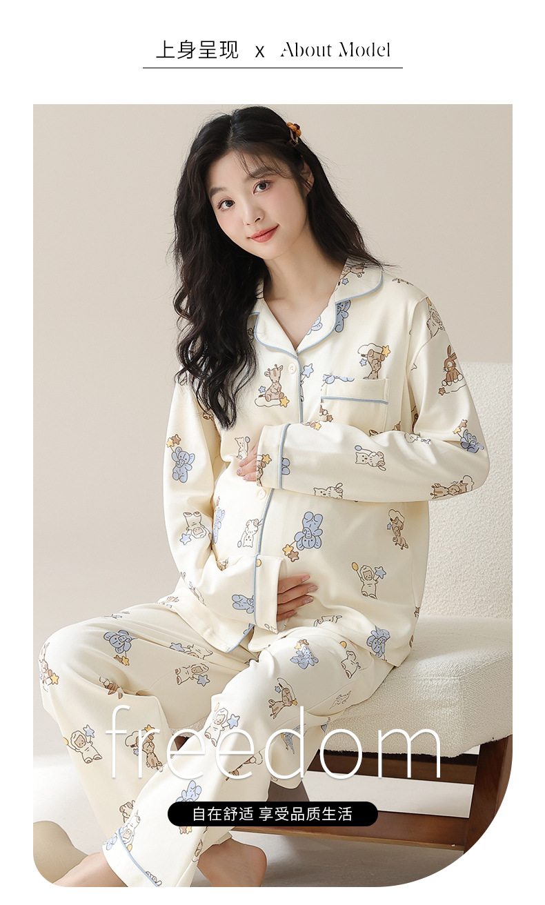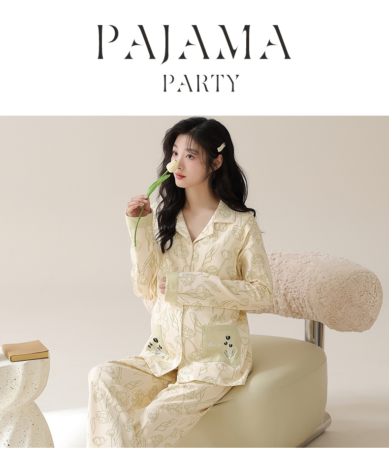 가슴 패드와 함께 목욕 수면 임신 여성 잠옷 여성의 긴 소매 모조 면 산전 및 산후 모유 수유 특수 문 옷 도매스토어 가기
