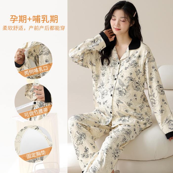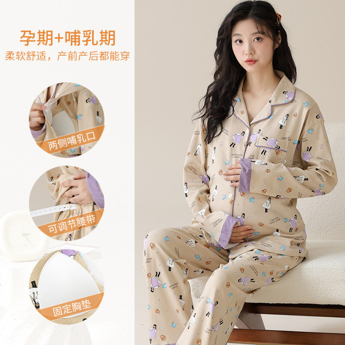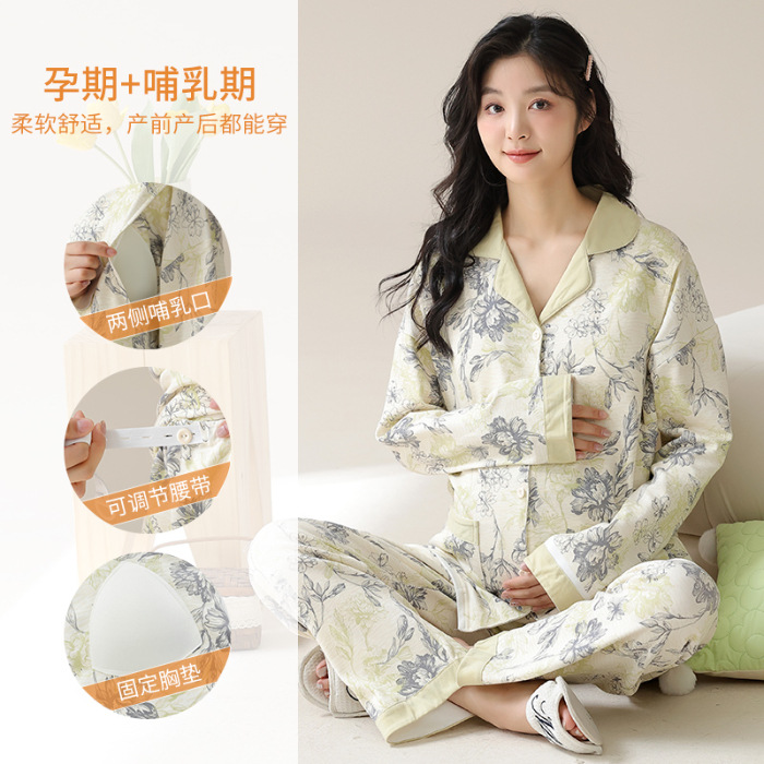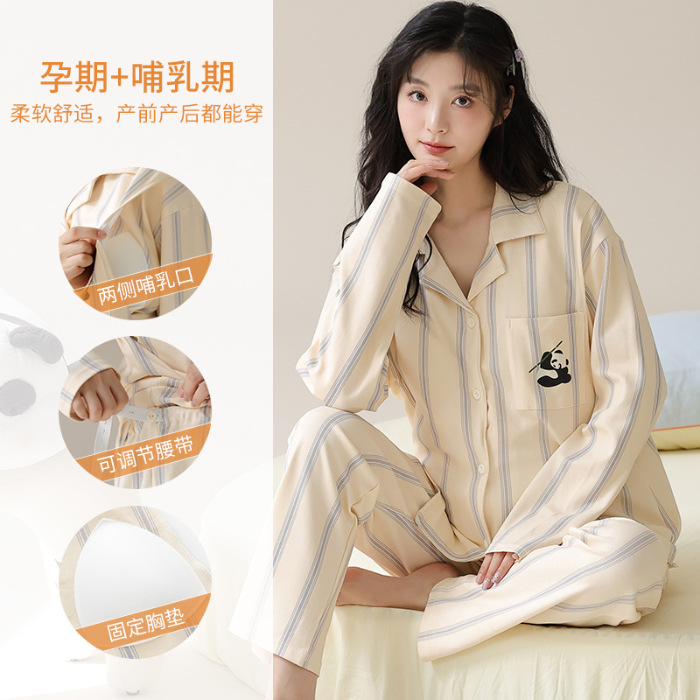 가슴 패드와 함께 목욕 수면 임신 여성 잠옷 여성의 긴 소매 모조 면 산전 및 산후 모유 수유 특수 문 옷 도매