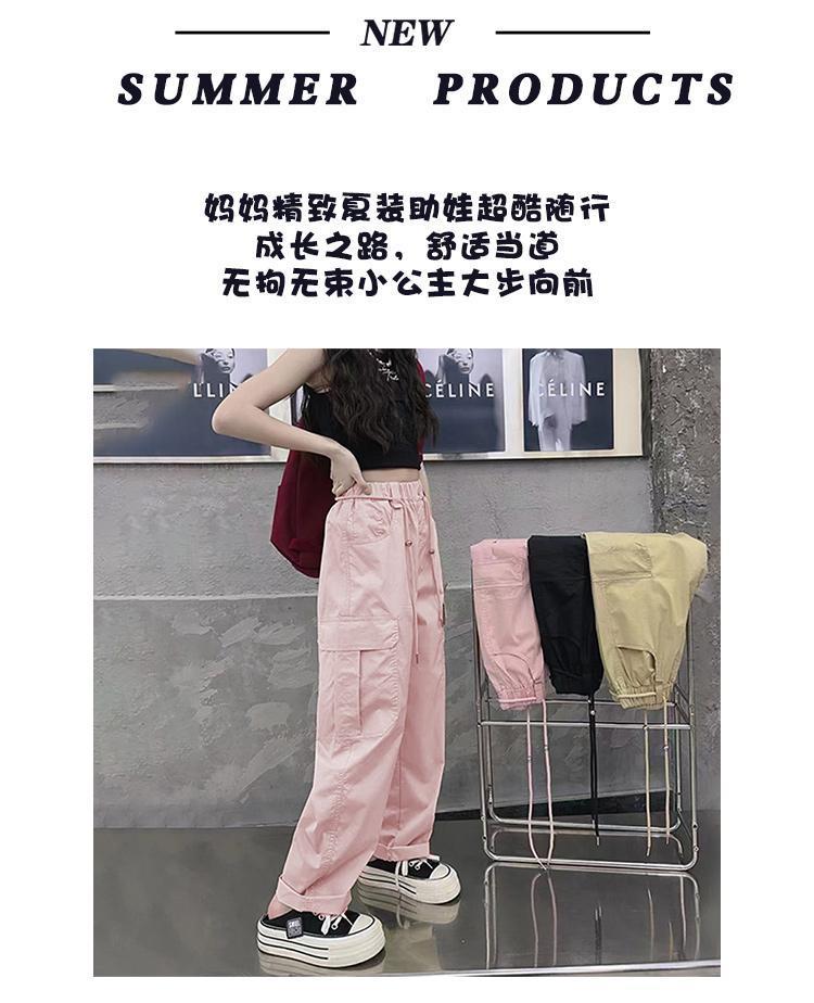 소녀 여름 새로운 코일 바지 2024 소녀 큰 어린이 여름 캐주얼 패션 스포츠 얇은 넓은 다리 바지 유행