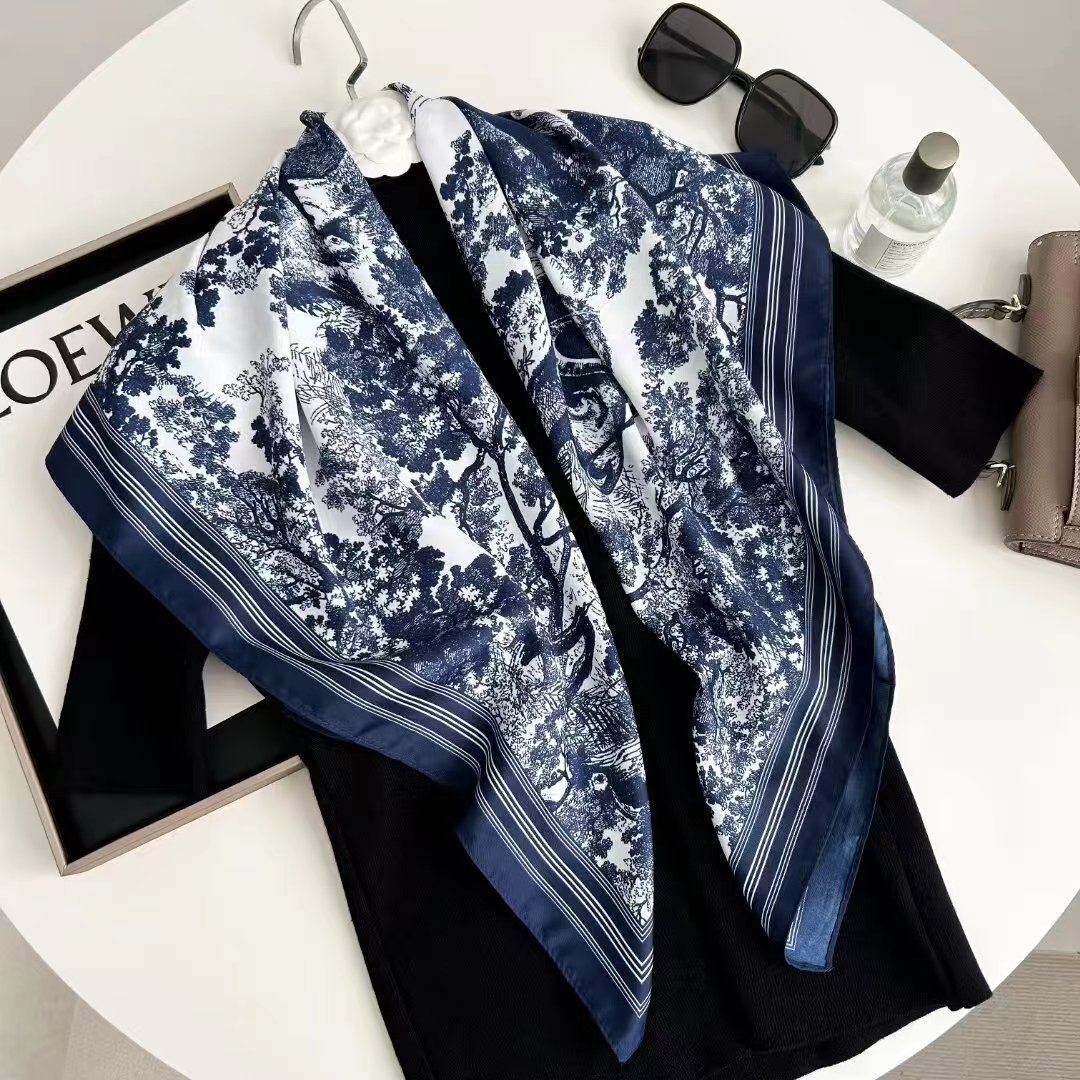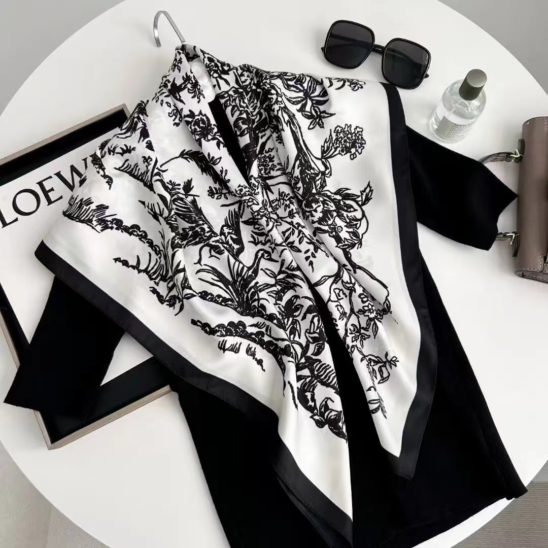 봄 새로운 스타일 우아한 복고풍 꽃 인쇄 새로운 중국 스타일 우아한 실크와 같은 질감 여성 올 매치 스퀘어 실크 스카프