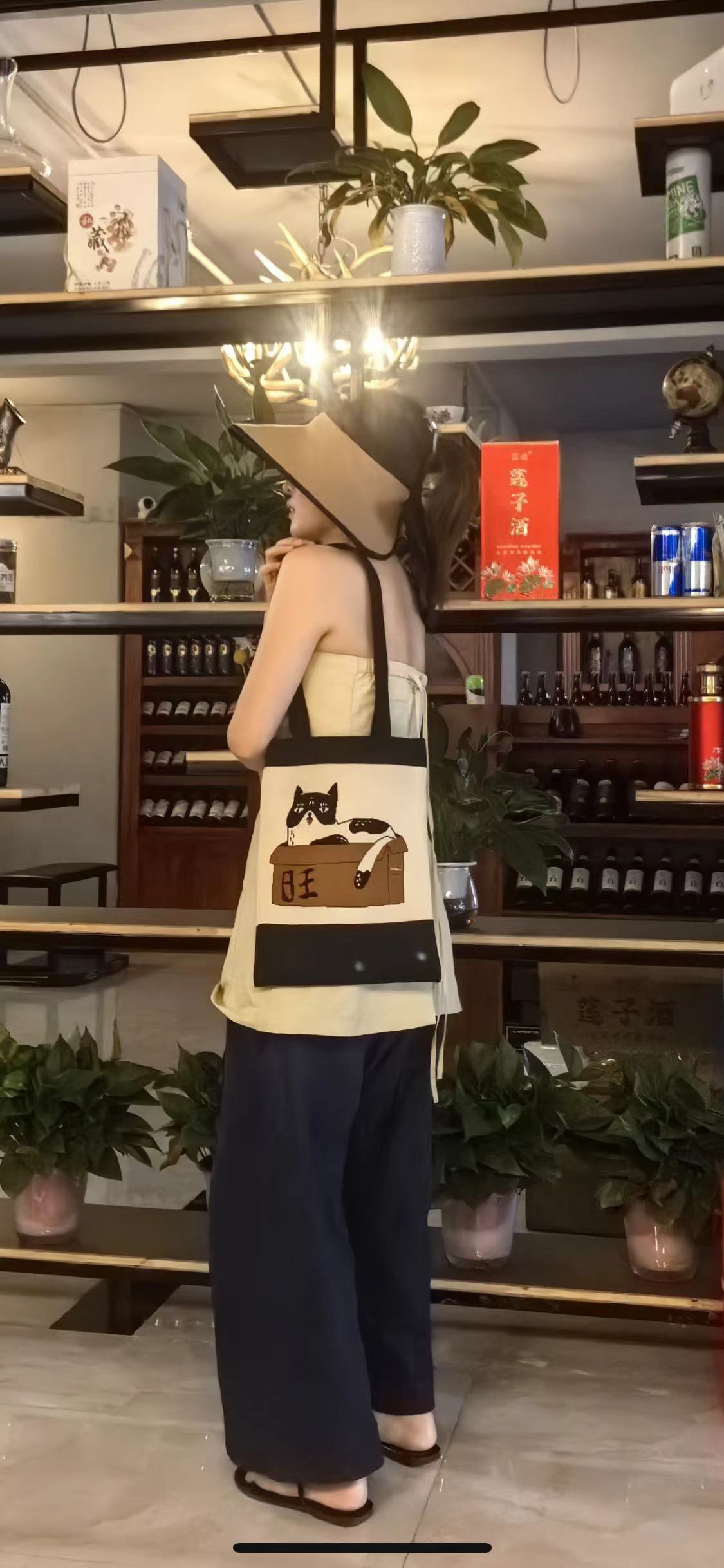 행운의 고양이 니트 토트 백 여성의 2024 봄 새로운 모리 스티칭 웨이브 인기있는 올 매치 대용량 쇼핑스토어 가기