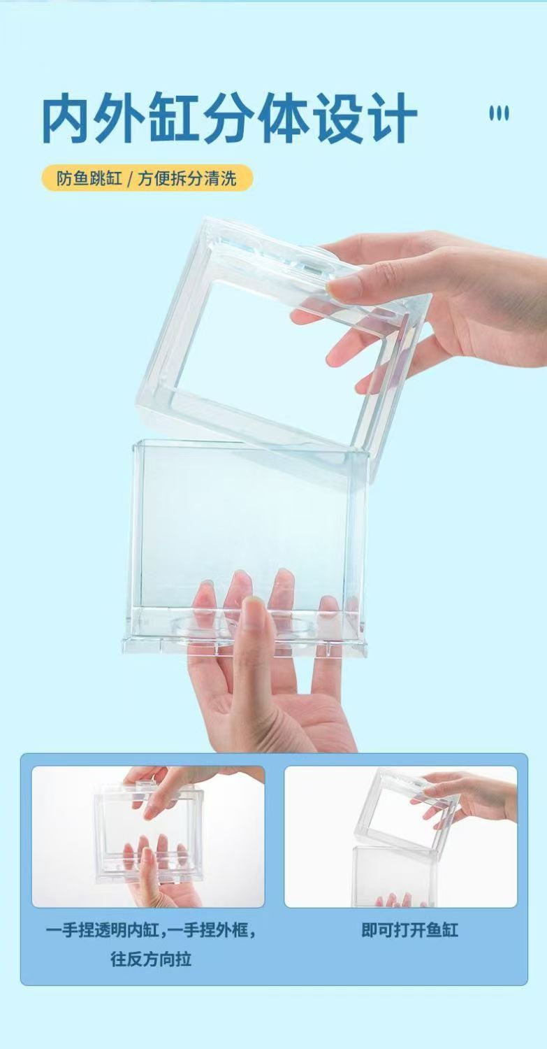 • 칸막이가 있는 투명한 대형 수조 하늘색 돌 패키지