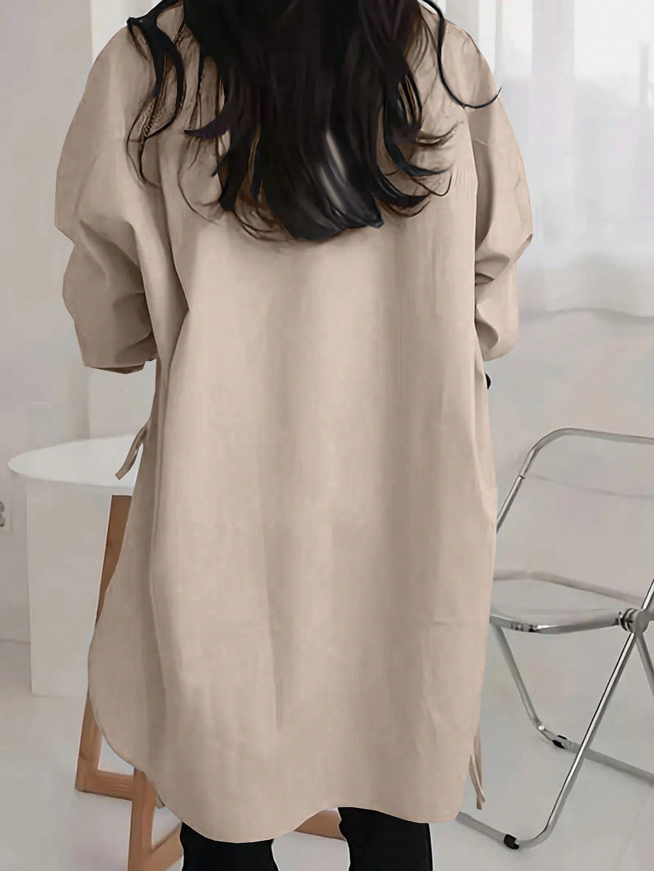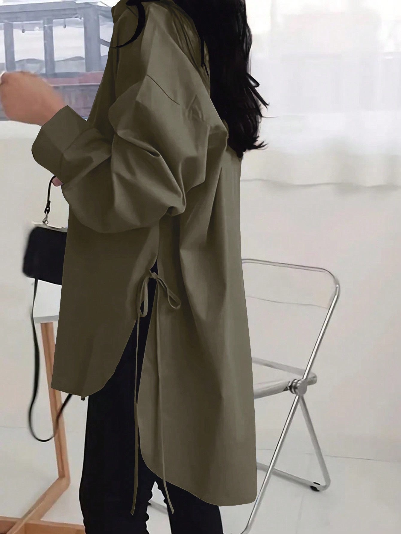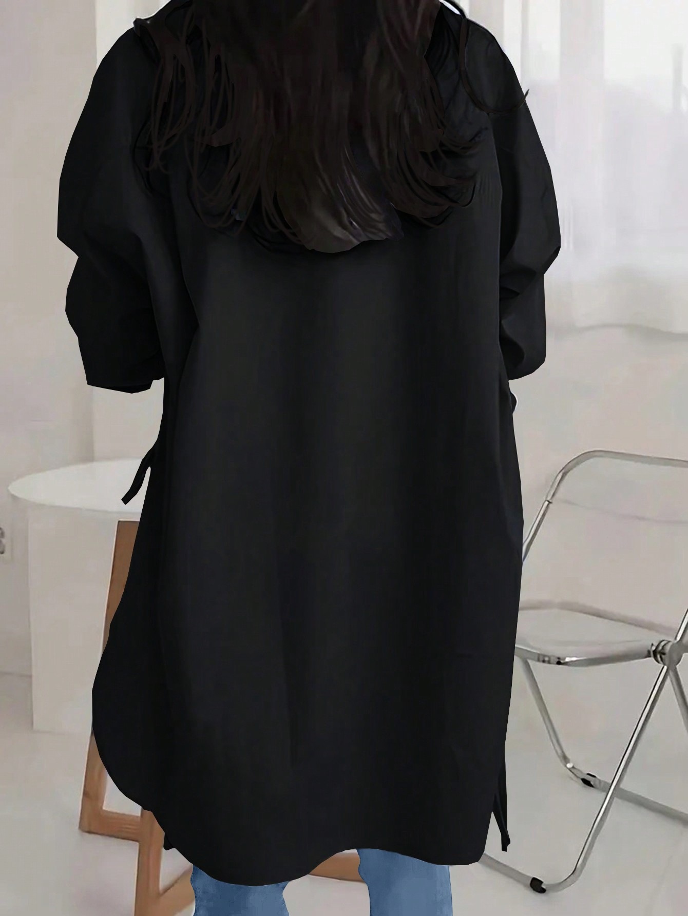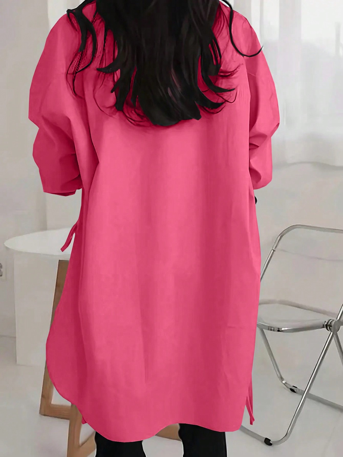 유럽과 미국의 대외 무역 여성 의류 아마존 AliExpress 새로운 여성의 이른 가을 느슨한 앞 짧은 뒤로 긴 레이스 업 슬림 셔츠스토어 가기