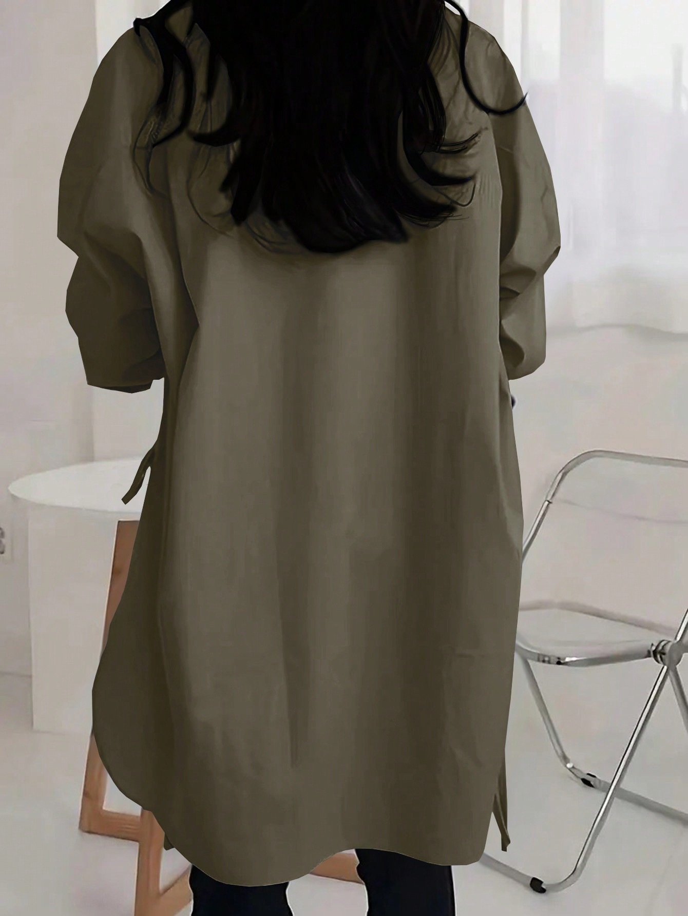 유럽과 미국의 대외 무역 여성 의류 아마존 AliExpress 새로운 여성의 이른 가을 느슨한 앞 짧은 뒤로 긴 레이스 업 슬림 셔츠