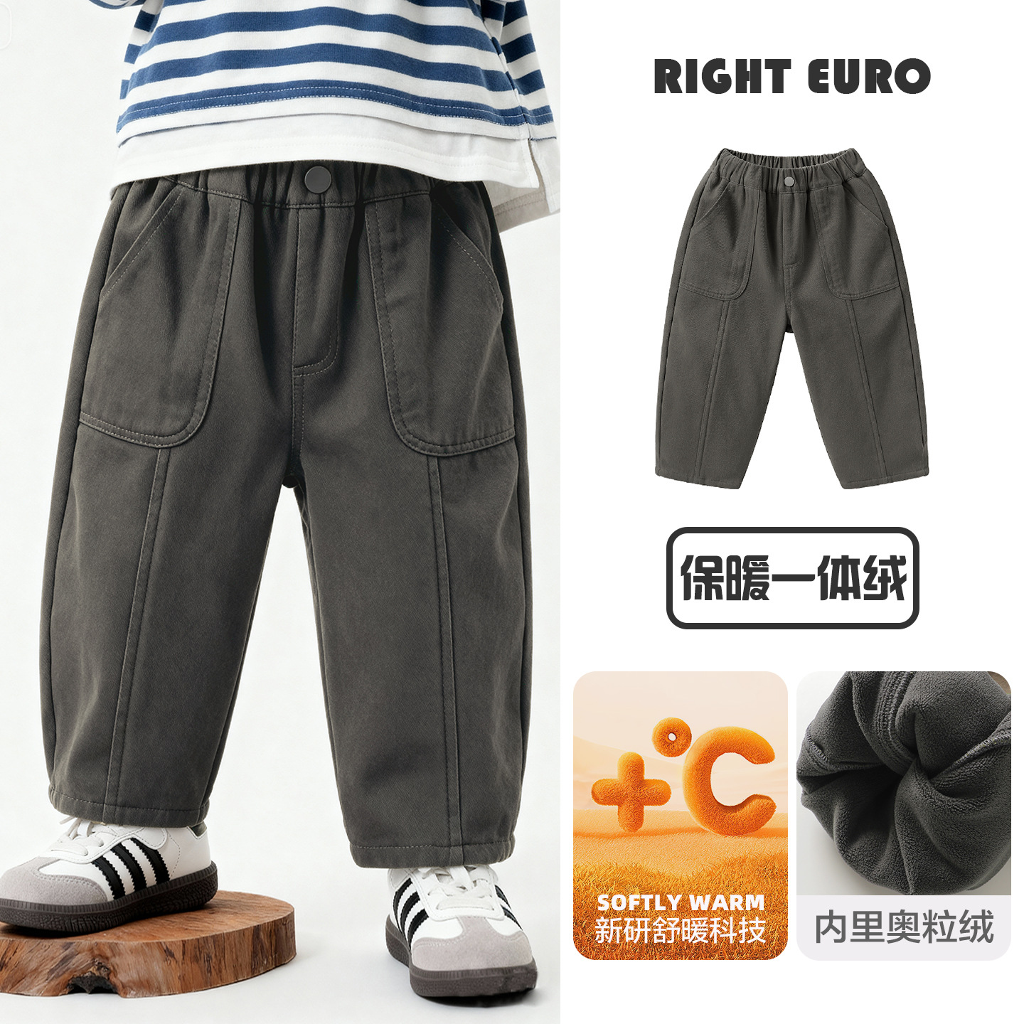 유럽풍 남아 캐주얼 긴바지, 기모 안감, 가을 겨울 2025 신상 아동복, 유아, 어린이, 남자아이 가을 트렌드