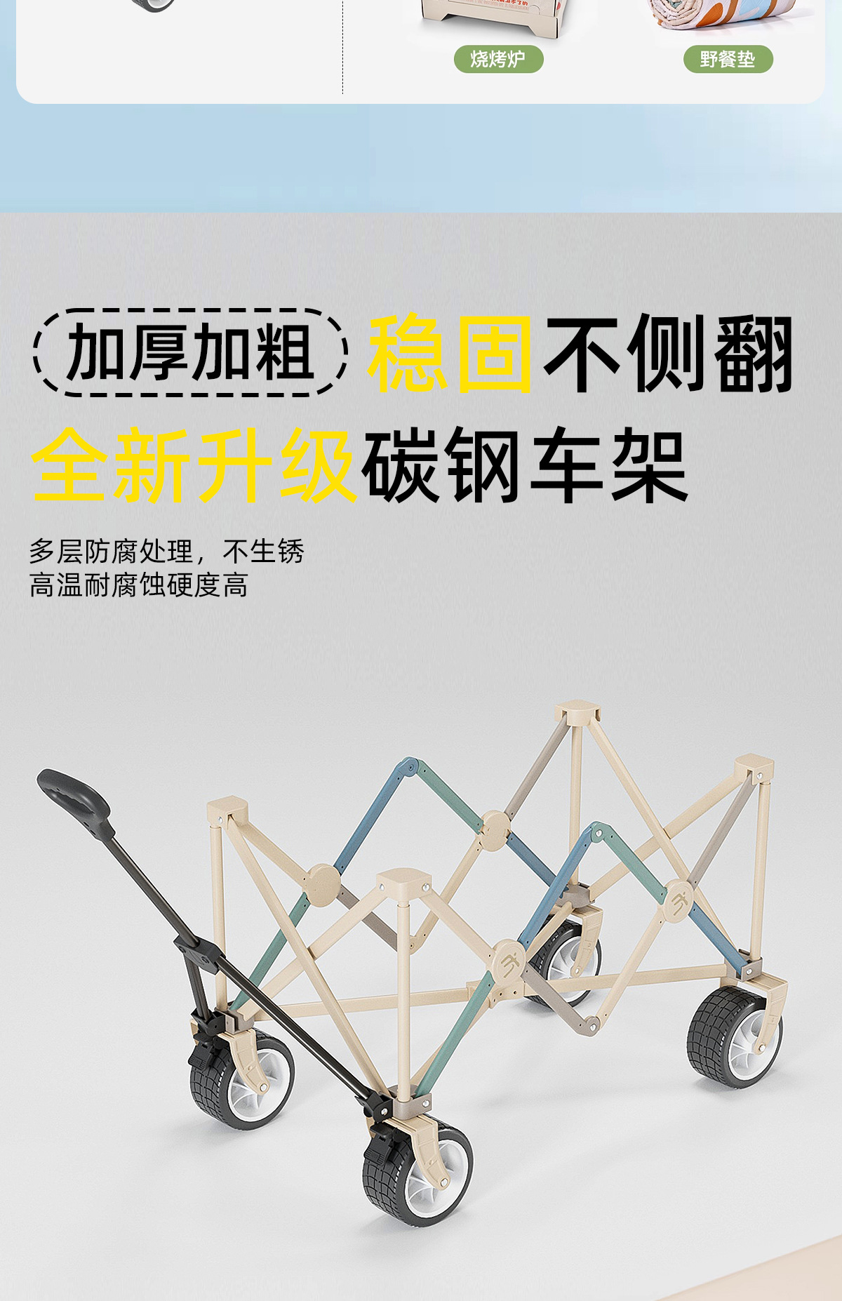 접이식 대형 캠프 카트 야외 작은 카트 캠핑 휴대용 스톨 카트 도매 맞춤형 캠핑스토어 가기