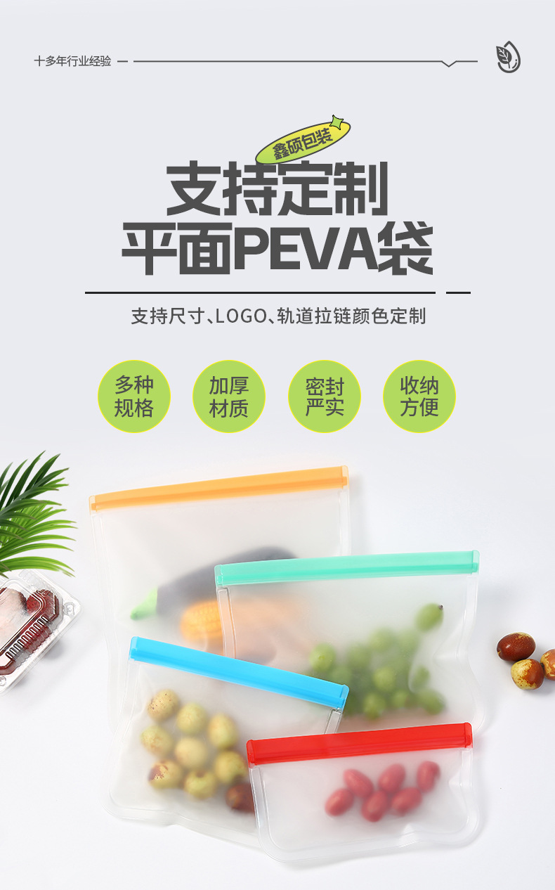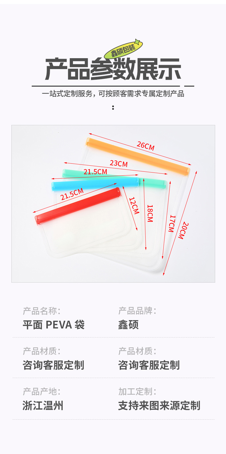 도매 반투명 평면 PEVA 포장 가방 가정 밀봉 신선한 보관 가방 두꺼운 진공 플라스틱 자체 밀봉 가방