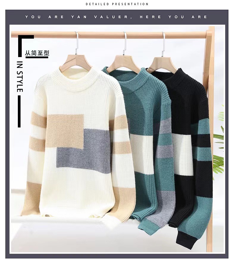 스웨터 남성용 명암 겨울 트렌디 브랜드베이스 니트웨어 남성용 트렌디 한 느슨한 게으른 스웨터 겨울 따뜻한 라인스토어 가기