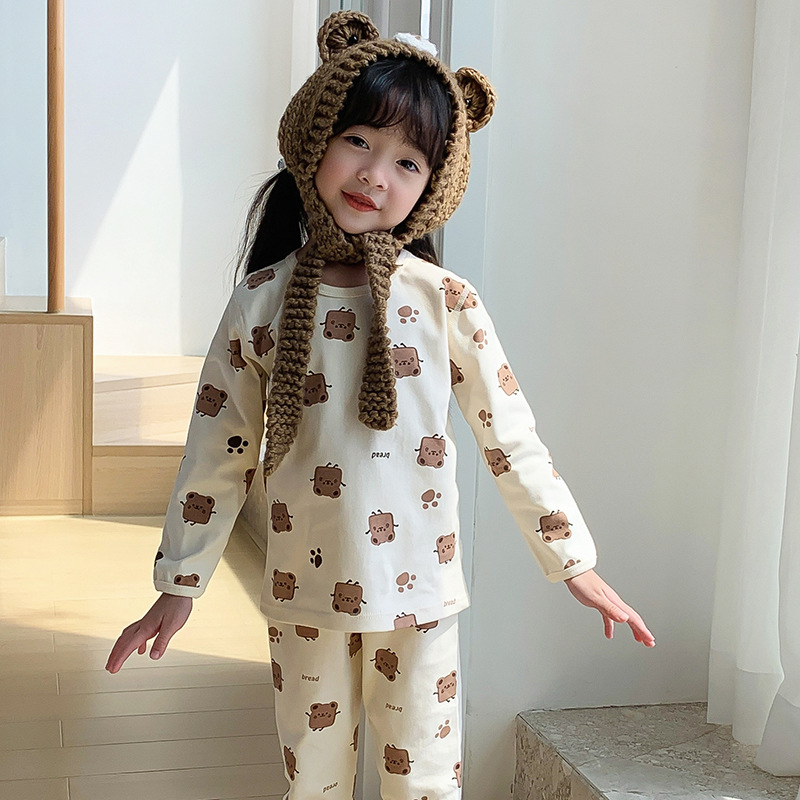 어린이 슈벨벳 코튼 속옷 세트 소년 소녀 가을 및 겨울 따뜻한 캐주얼 파자마 귀여운 홈 의류 세트스토어 가기