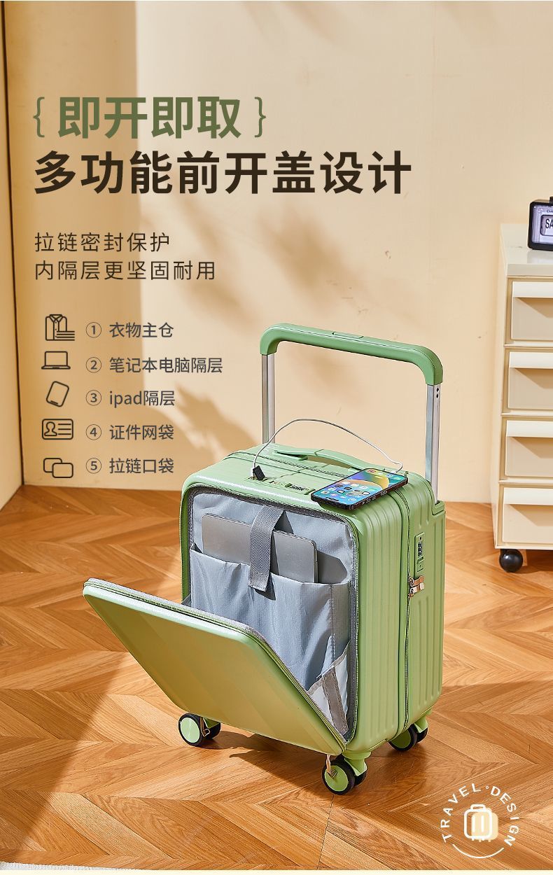 行李箱女前置开口小型新款登机轻便密码箱迷你拉杆箱多功能旅行箱