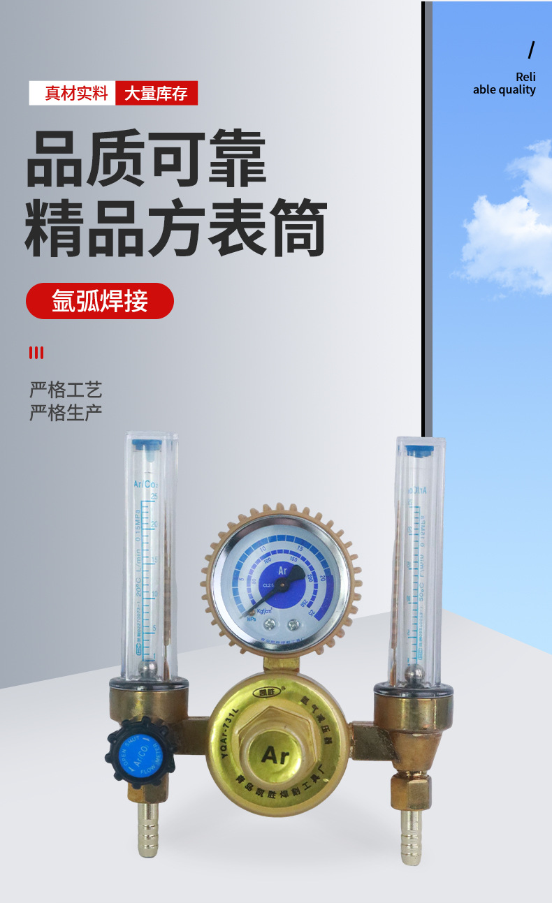 고품질 이중 튜브 평방 미터 배럴 아르곤 가스 미터 이중 흐름 압력 감속기 에너지 절약 낙하 방지 아르곤 아크 용접 산업 기압계