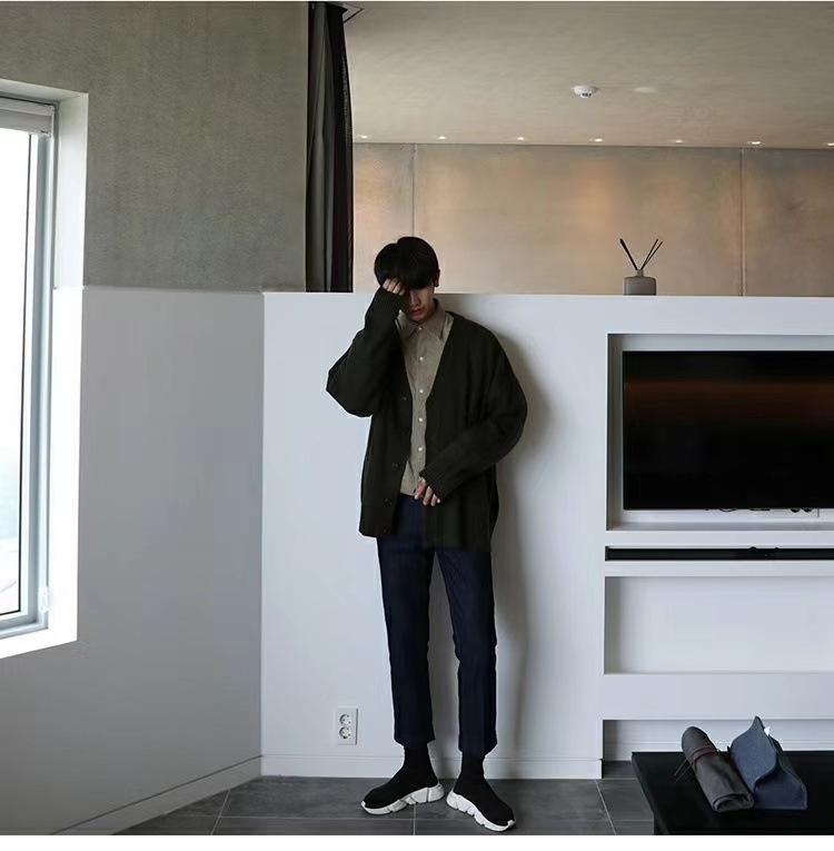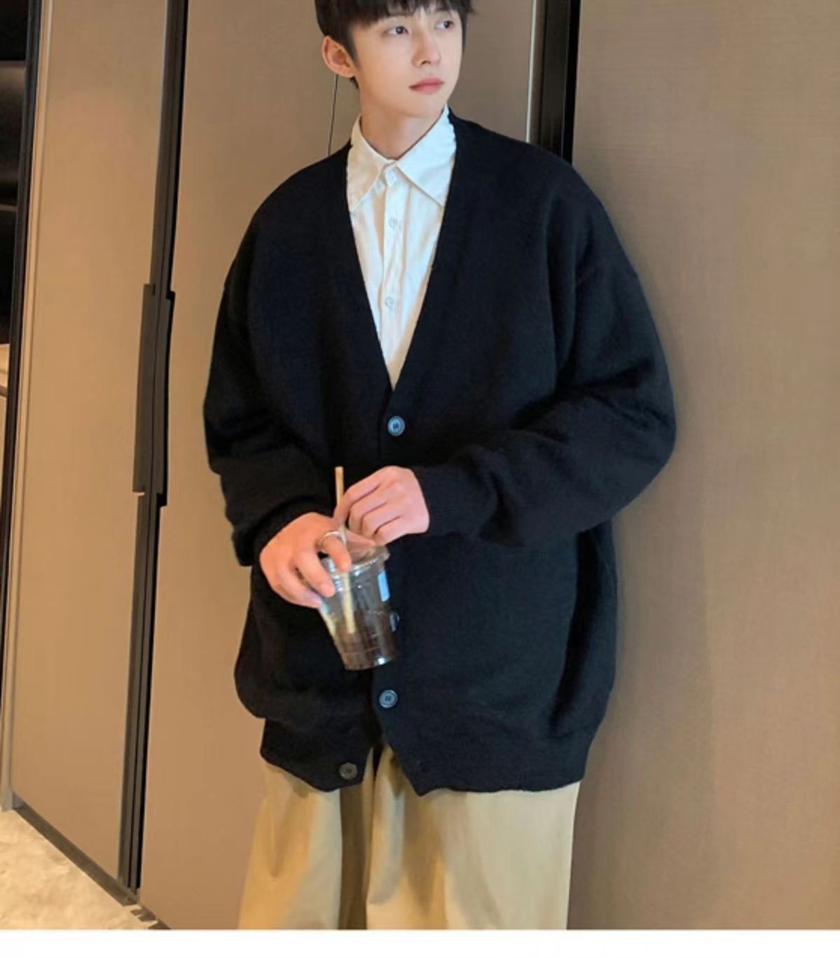 카디건 스웨터 남자 가을 한국 스타일 유행 느슨한 솔리드 컬러 아카데미 스타일 스웨터 Ins 인기 브랜드 올 매치 재킷스토어 가기