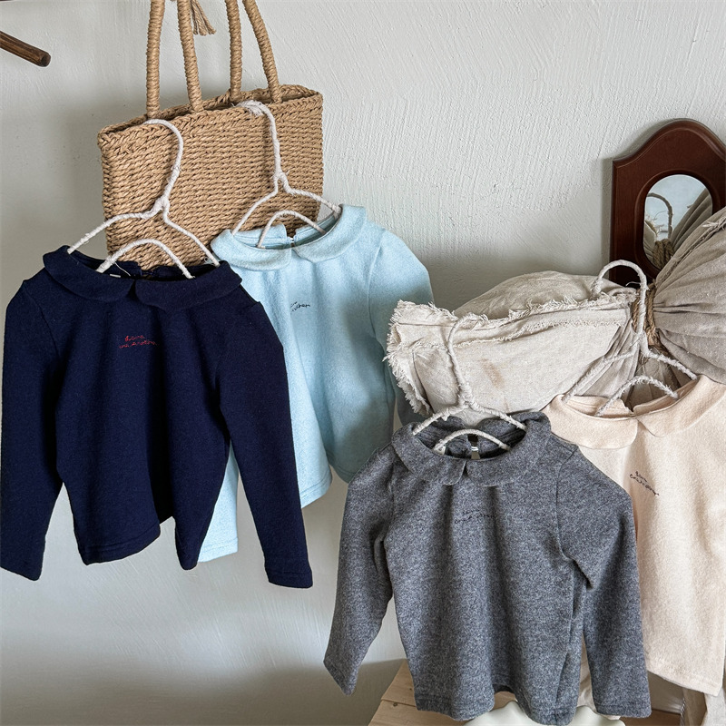 2025 가을 아동 의류 새로운 어린이 한국 스타일 가을 긴팔 티셔츠 소녀 셔츠 스타일 바닥 셔츠 5558