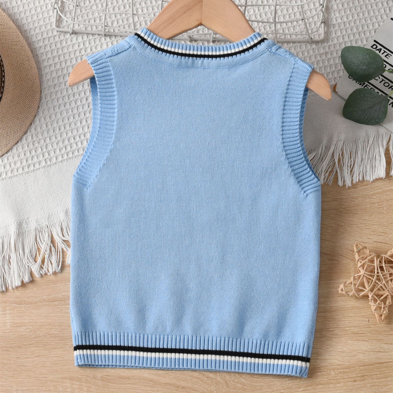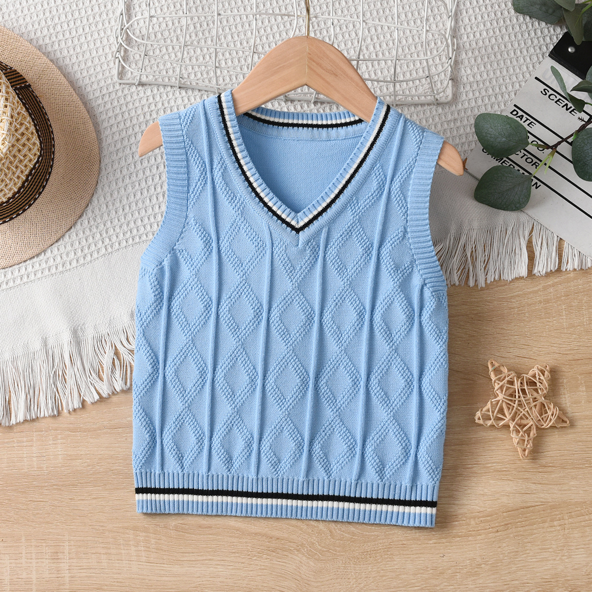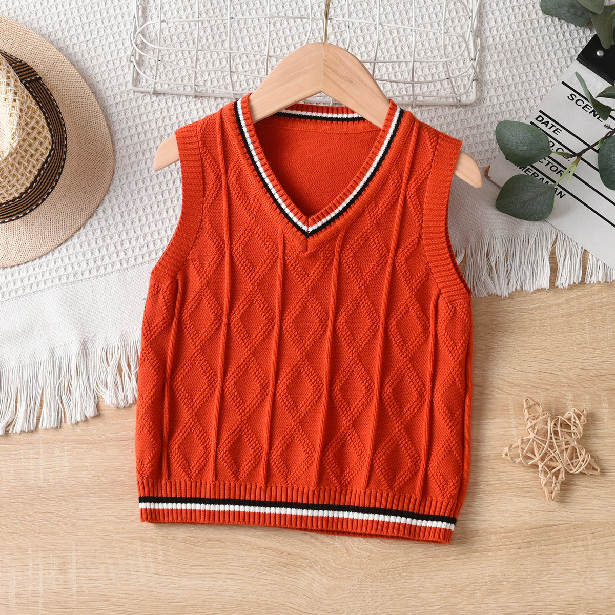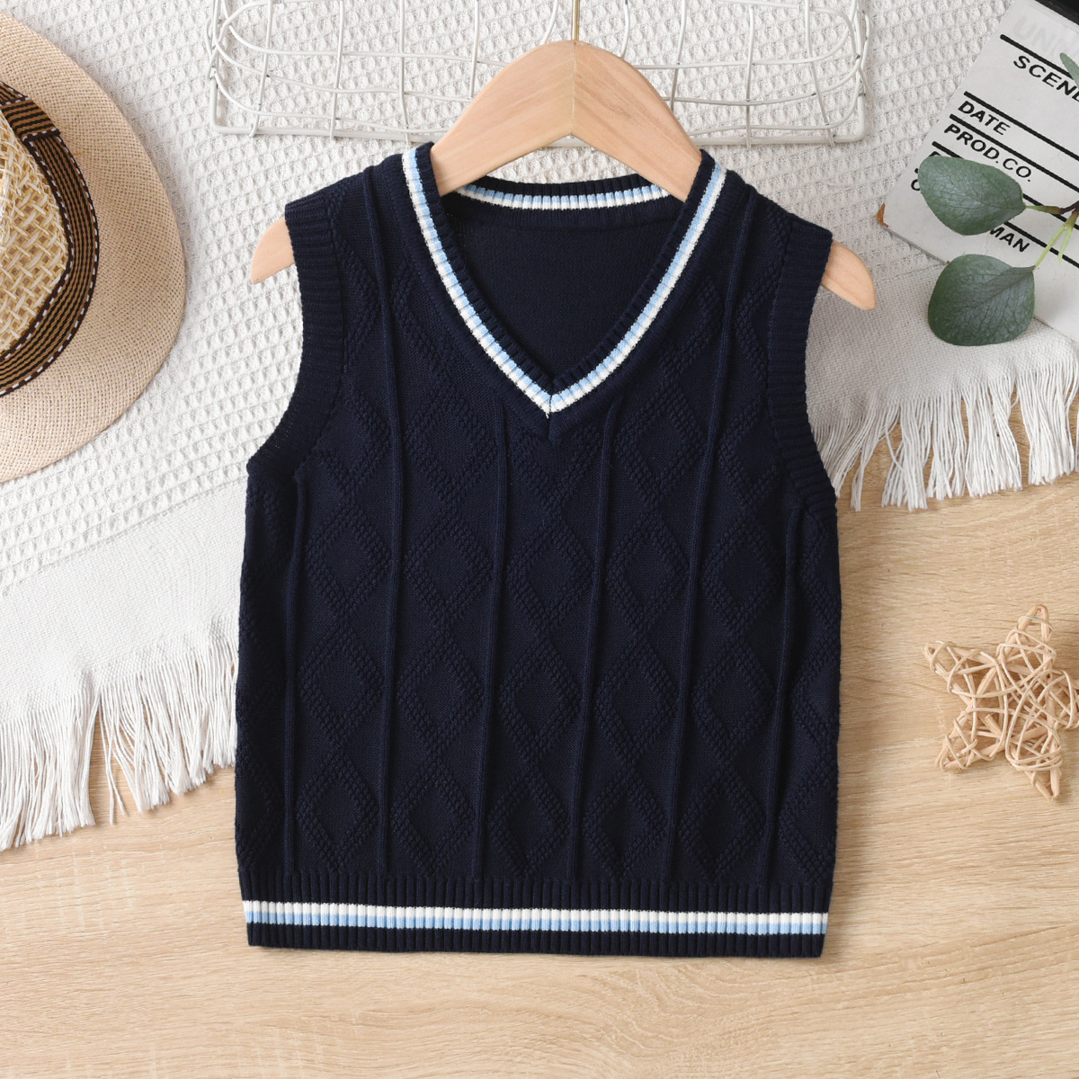 소년 니트 조끼 봄과 가을 소녀 2024 새로운 어린이 대학 스타일 양모 조끼 어린이 학생 교복스토어 가기