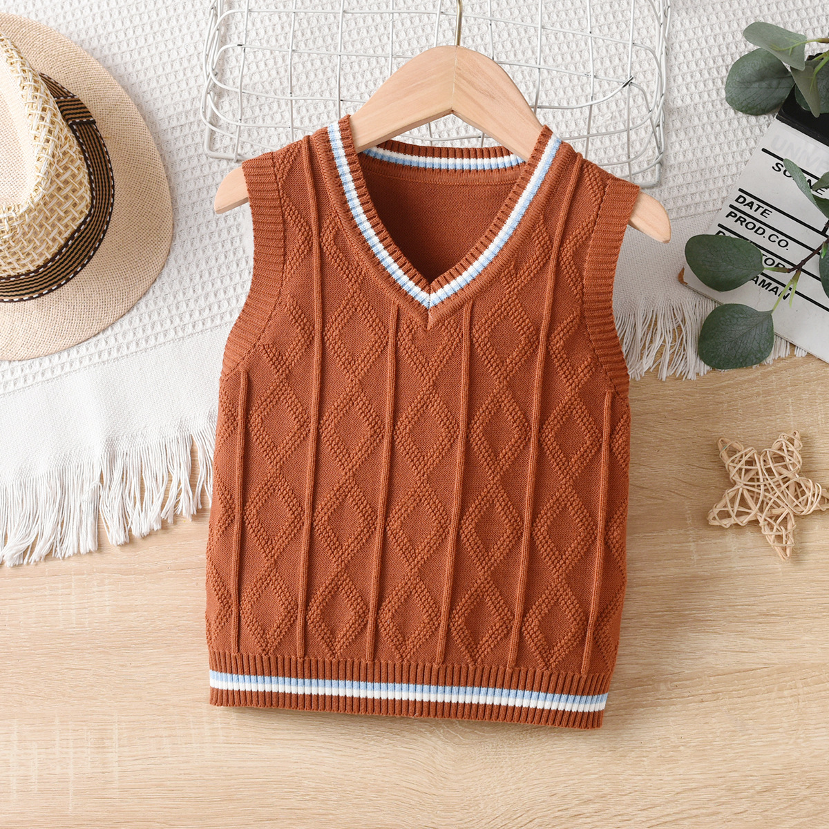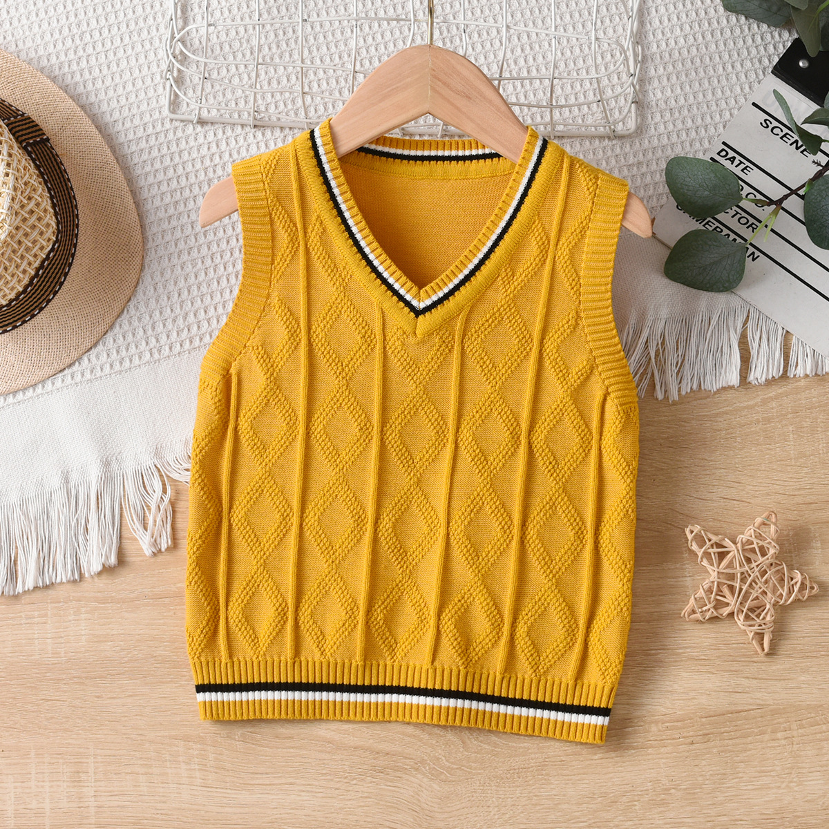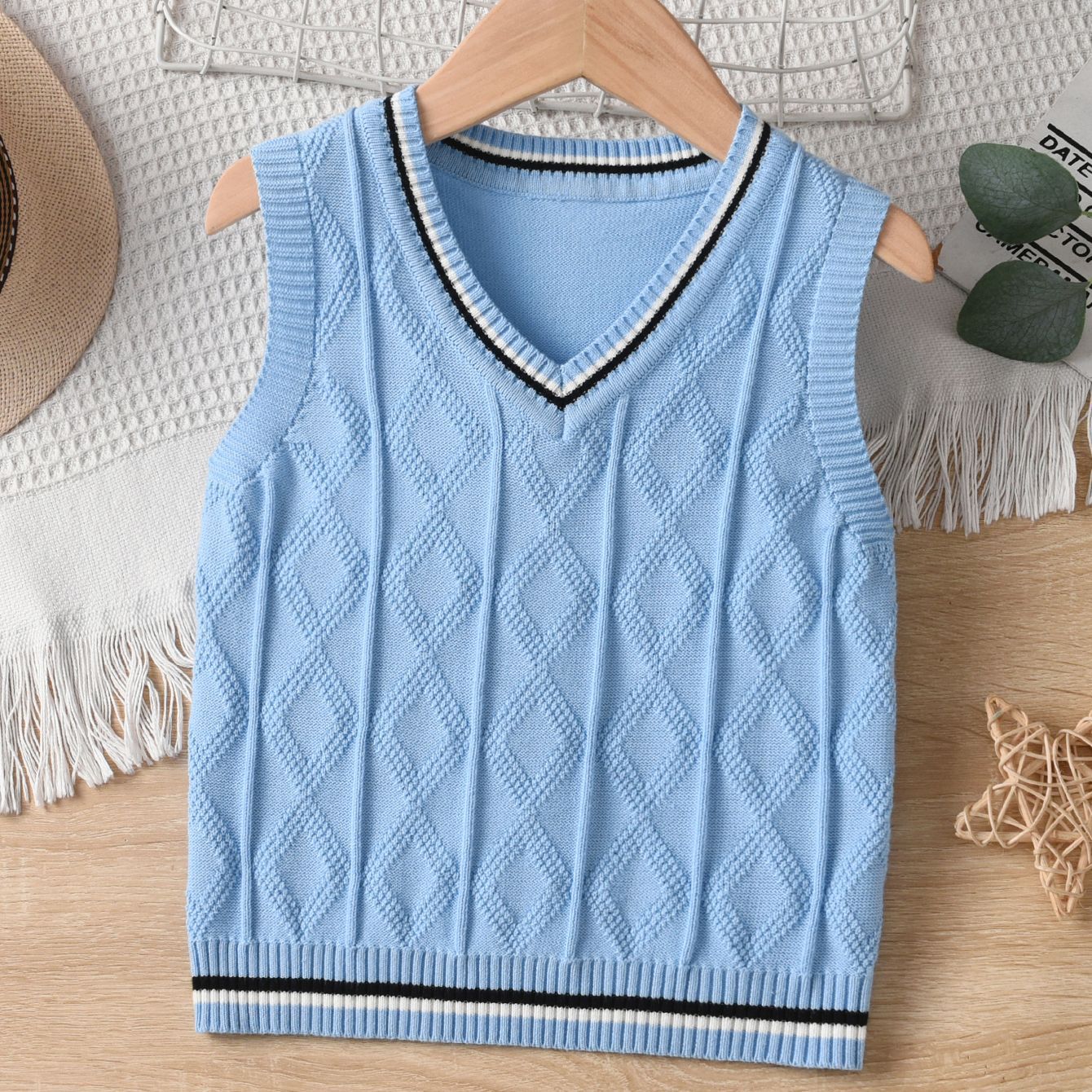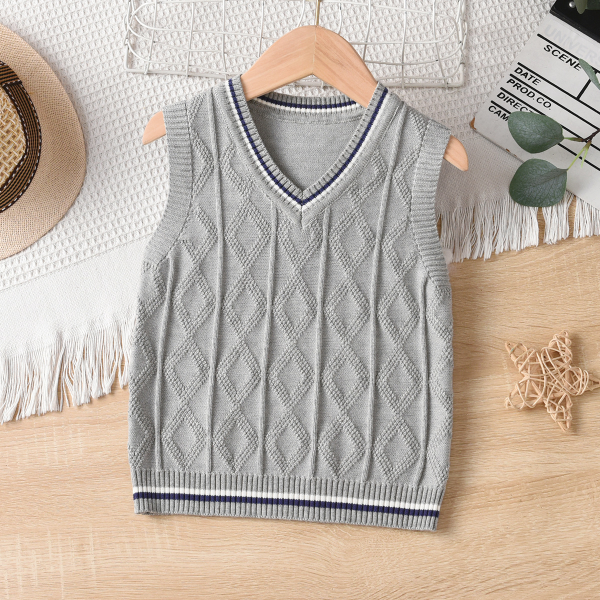 소년 니트 조끼 봄과 가을 소녀 2024 새로운 어린이 대학 스타일 양모 조끼 어린이 학생 교복스토어 가기