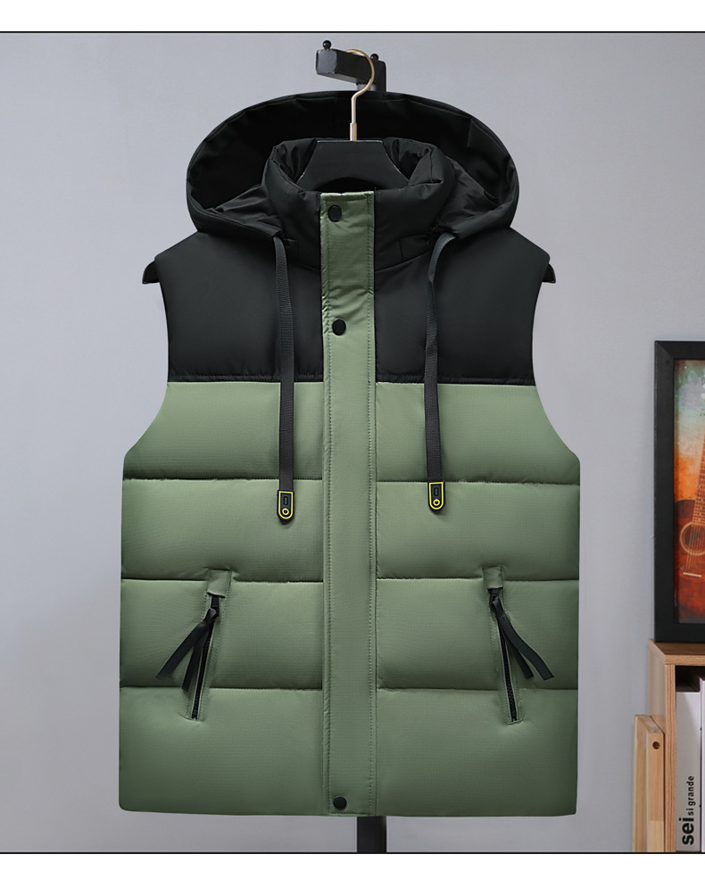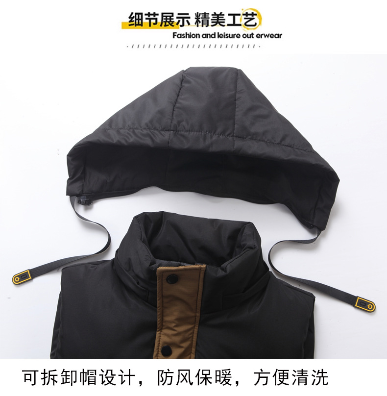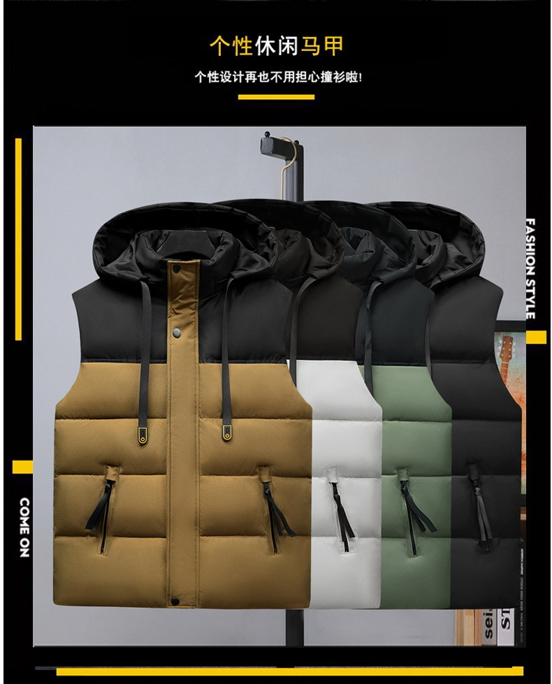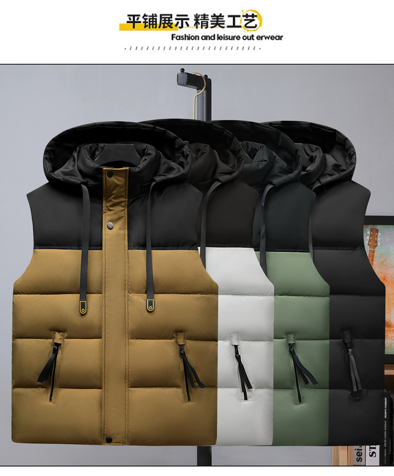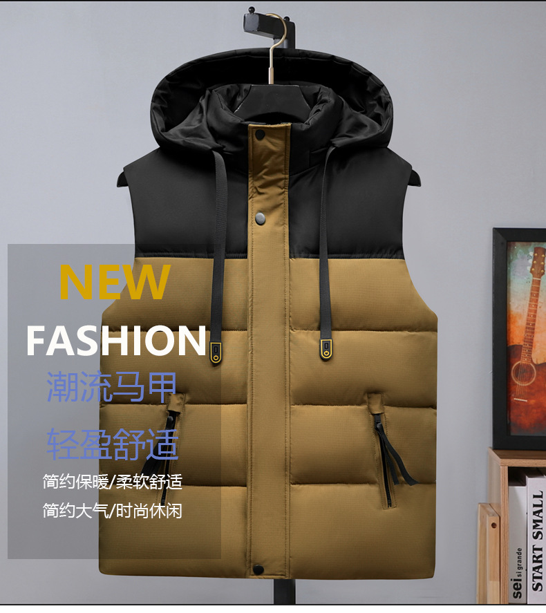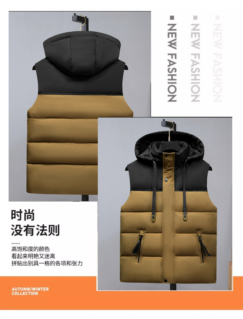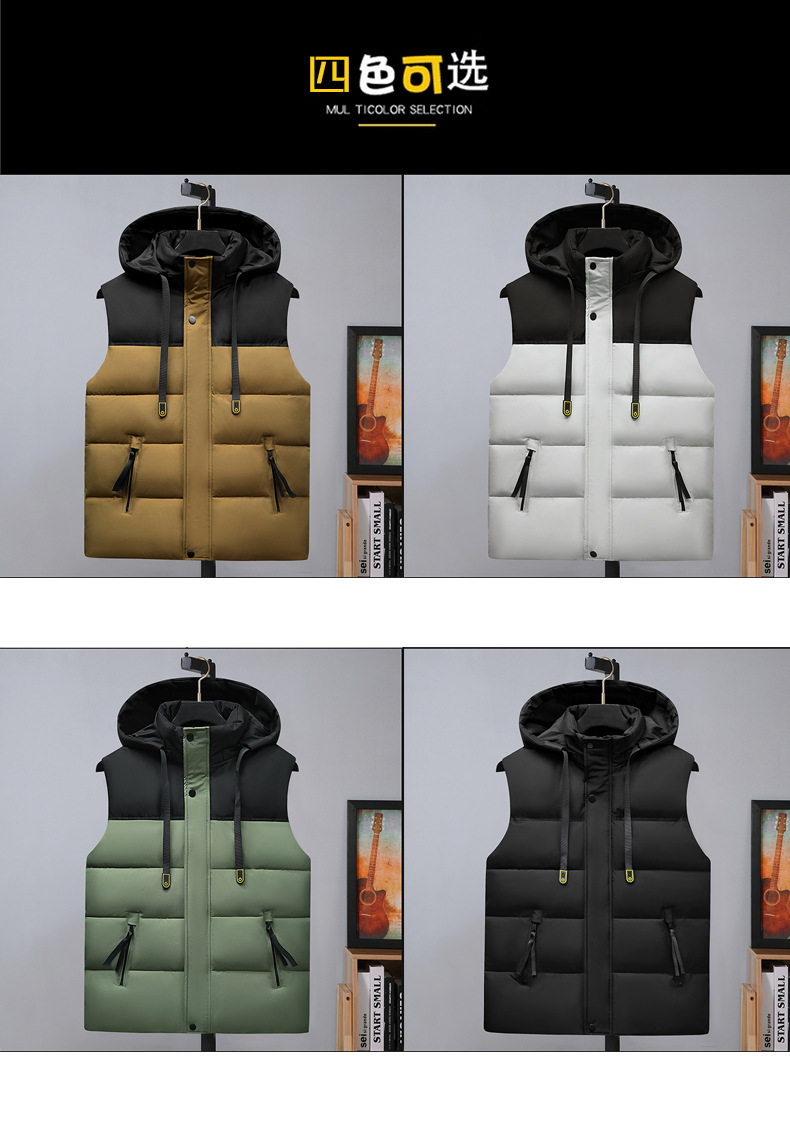 가을과 겨울 플러스 사이즈 남성용 면화 조끼 남성용 모자면 조끼 색상 매칭 레저 다운 면복 조끼 프린트 루그 조수스토어 가기