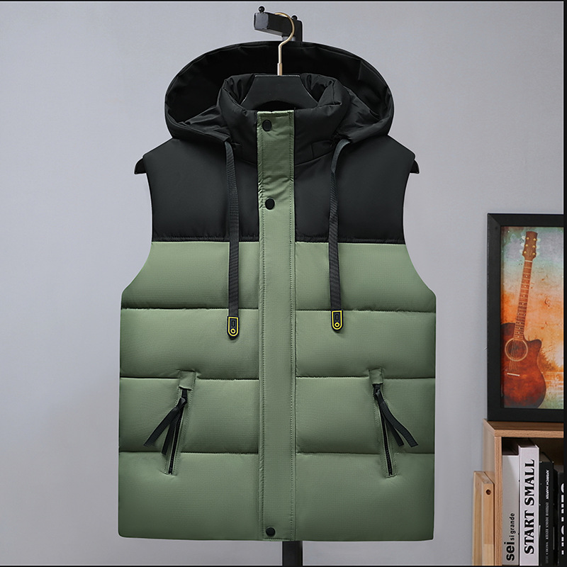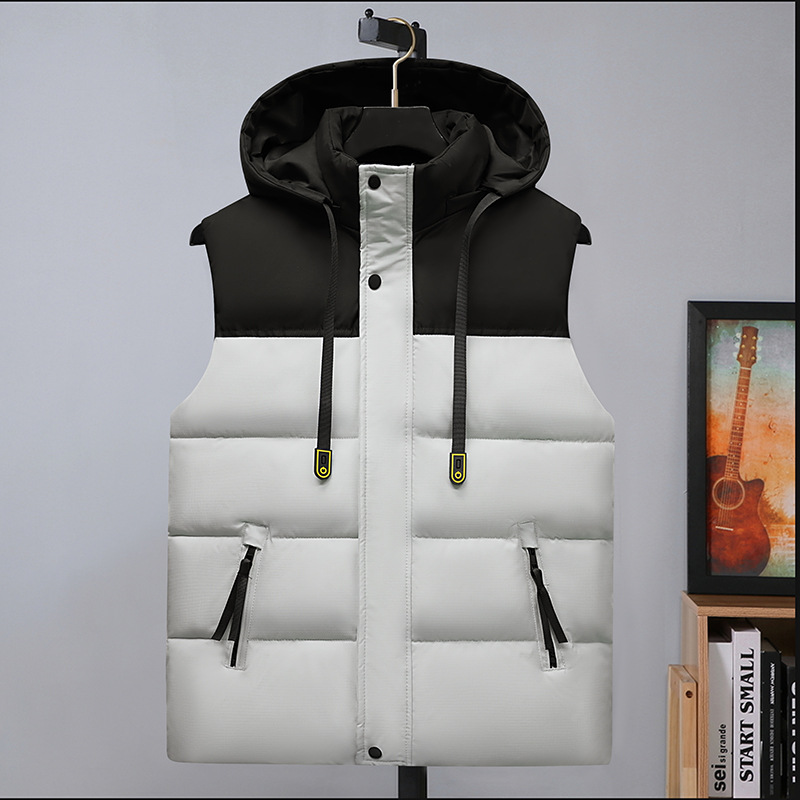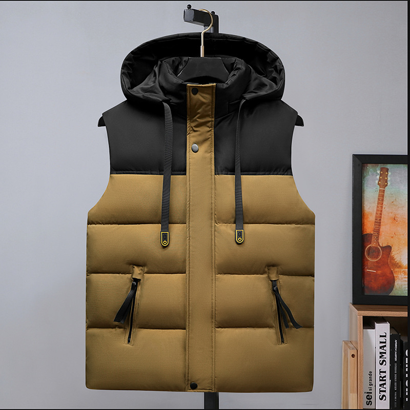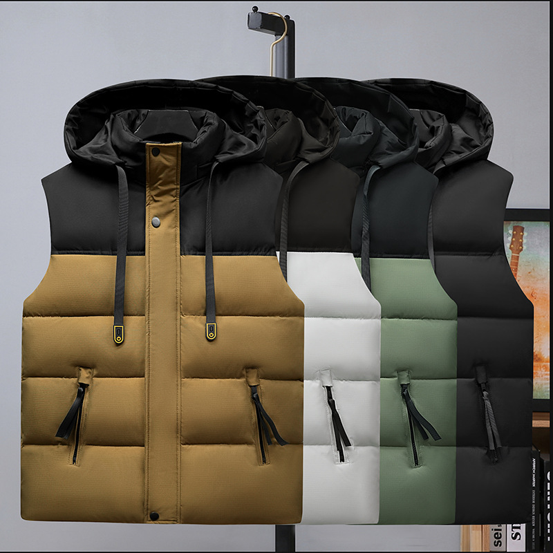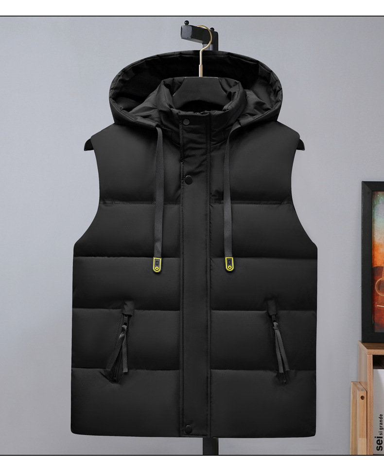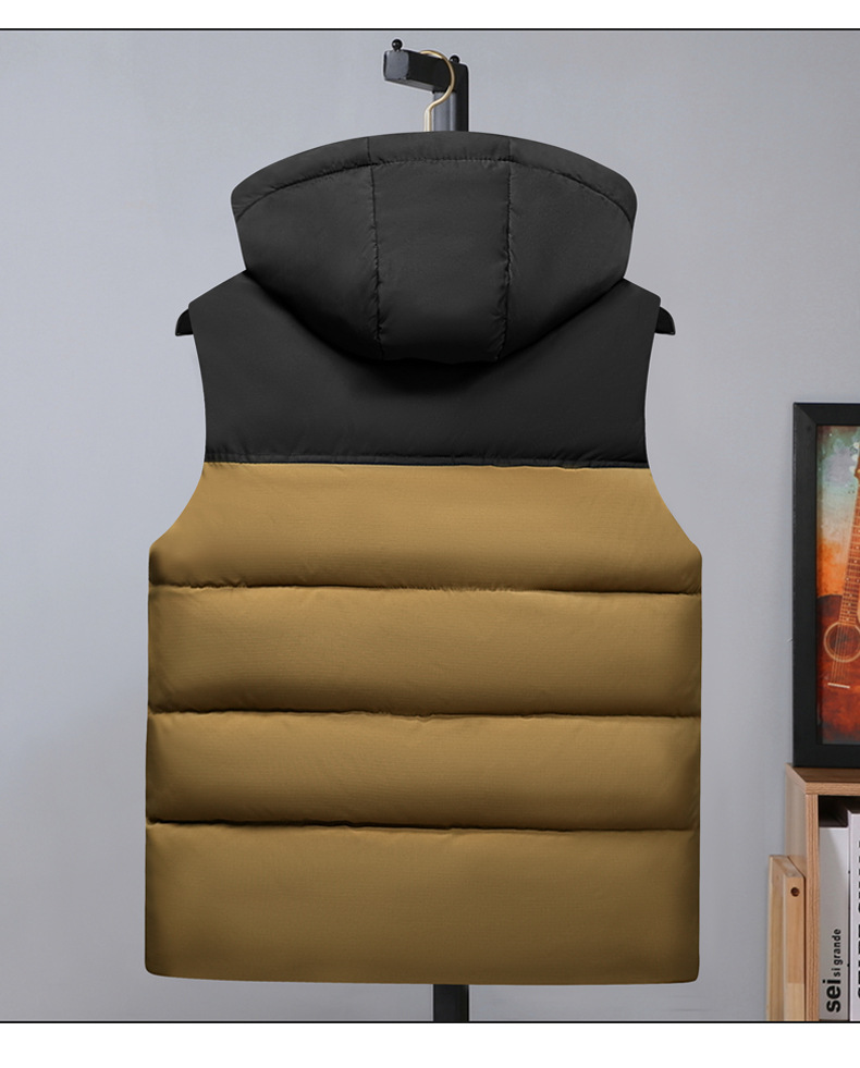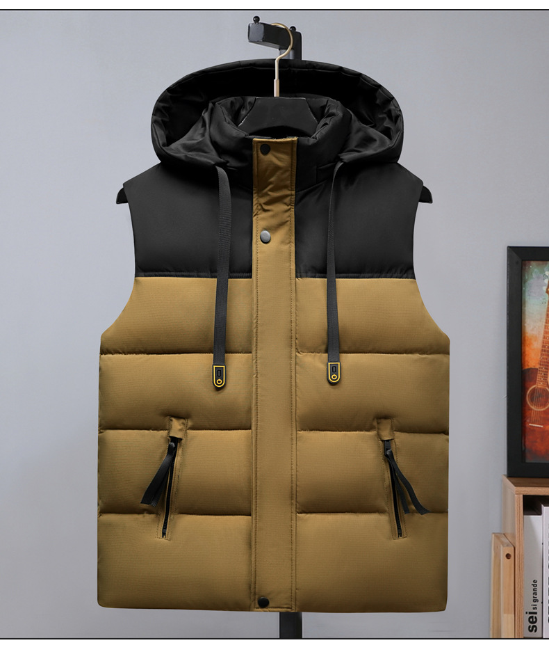 가을과 겨울 플러스 사이즈 남성용 면화 조끼 남성용 모자면 조끼 색상 매칭 레저 다운 면복 조끼 프린트 루그 조수스토어 가기