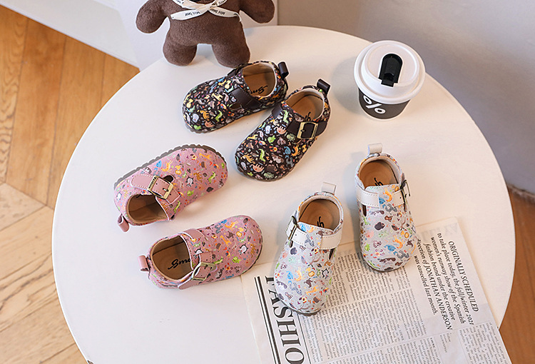 어린이 정품 가죽 출생 신발 소녀 한국 만화 낙서 작은 가죽 신발 소녀 패션 공주 신발 아기 부드러운 싱글 신발스토어 가기