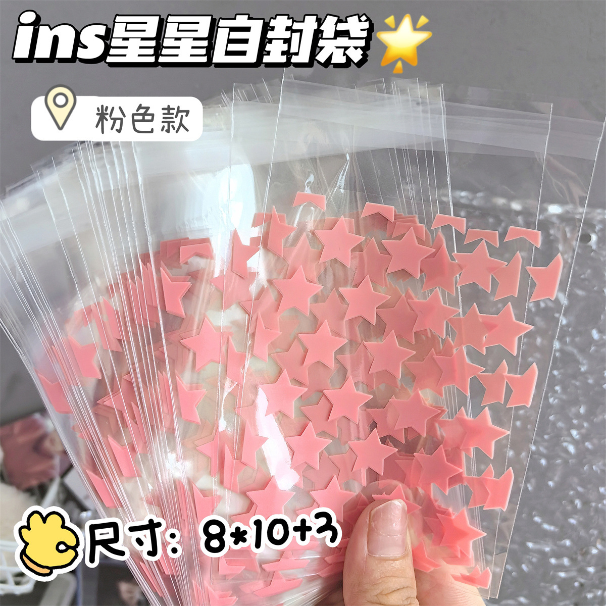 • 핑크 스타 지퍼백, 50개 1팩