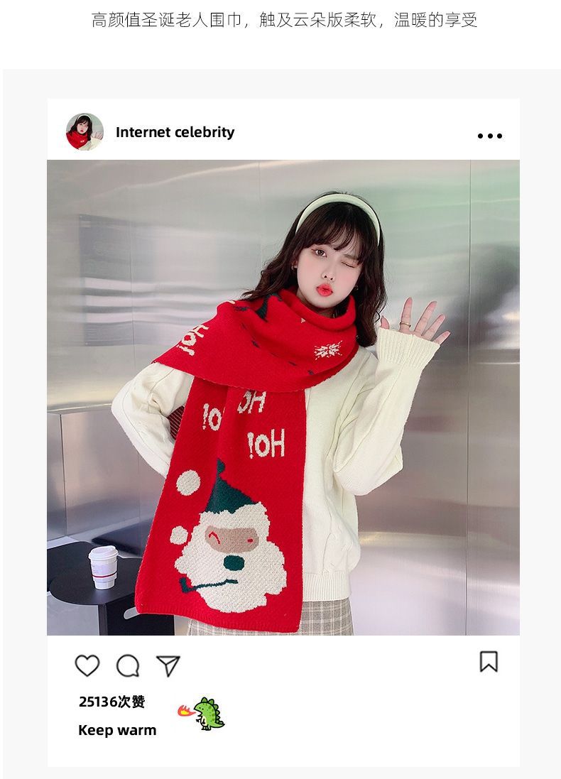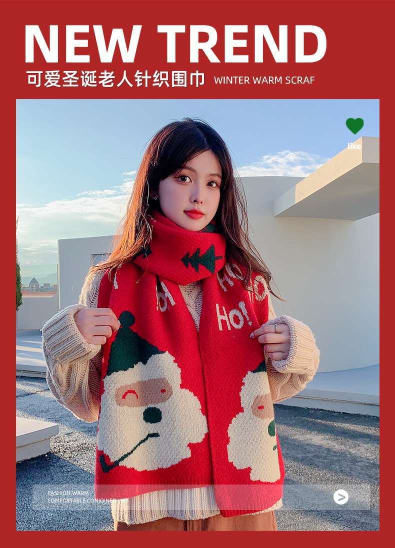 붉은 산타 클로스 스카프 여자 겨울 올매치 두꺼운 따뜻한 학생 커플 새해 선물 니트 긴 스카프스토어 가기