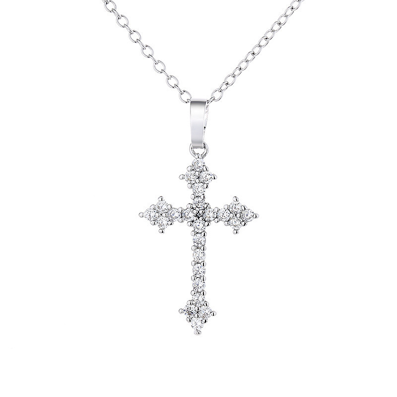입욕은 퇴색하지 않습니다 ~ S925 스털링 실버 전체 다이아몬드 크로스 목걸이 미국 힙합 조커 틈새 디자인 감각스토어 가기