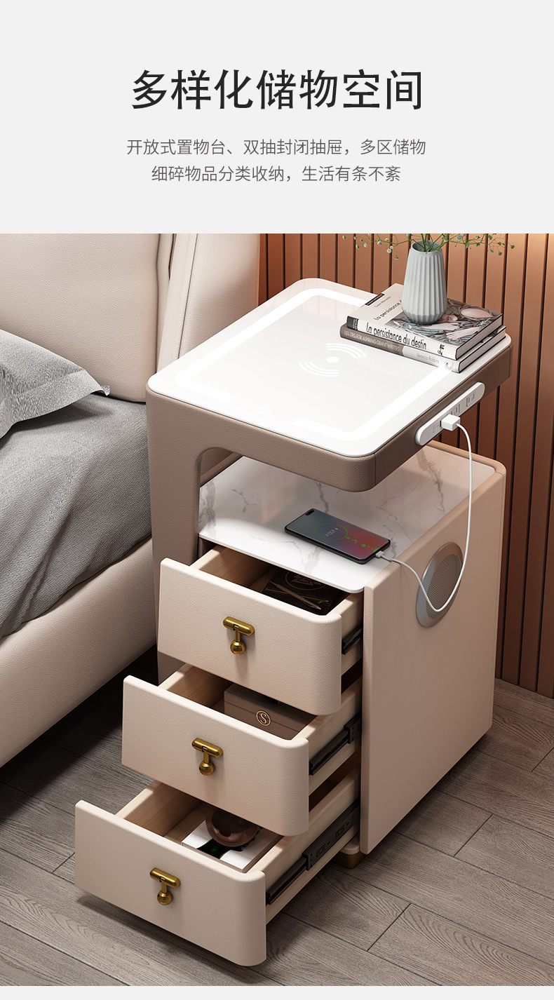 스마트 침대 옆 테이블 2024 새로운 간단한 현대 빛 고급 충전식 다기능 단단한 나무 작은 침대 옆 캐비닛 오디오스토어 가기