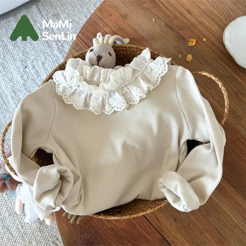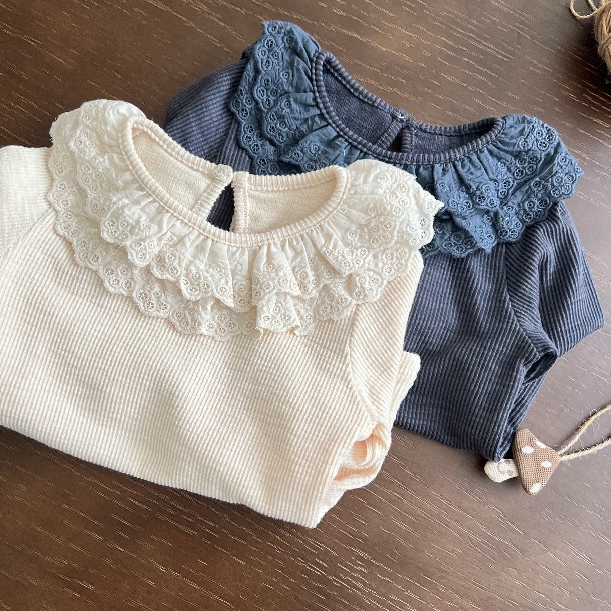 [핑크 집] 여자 인형 칼라 스타일 티셔츠 한국 가을 긴 소매베이스 셔츠 아기 탑 어린이 T