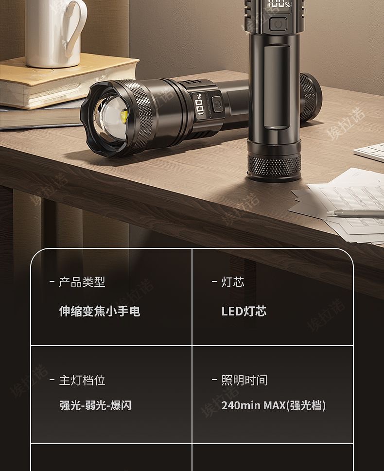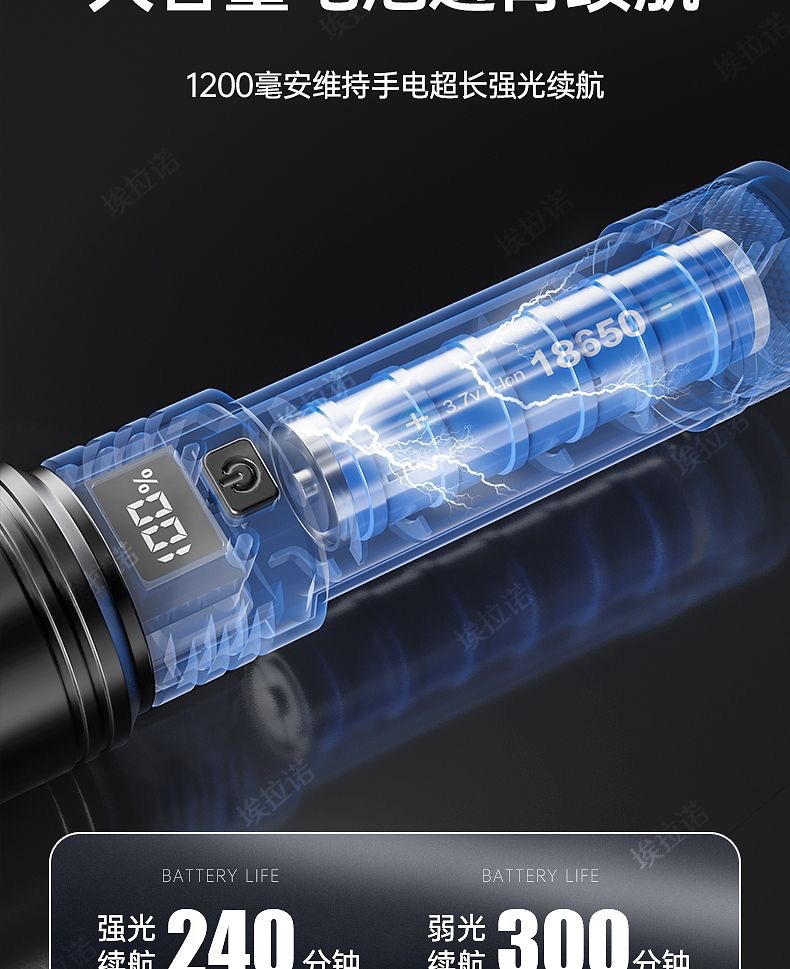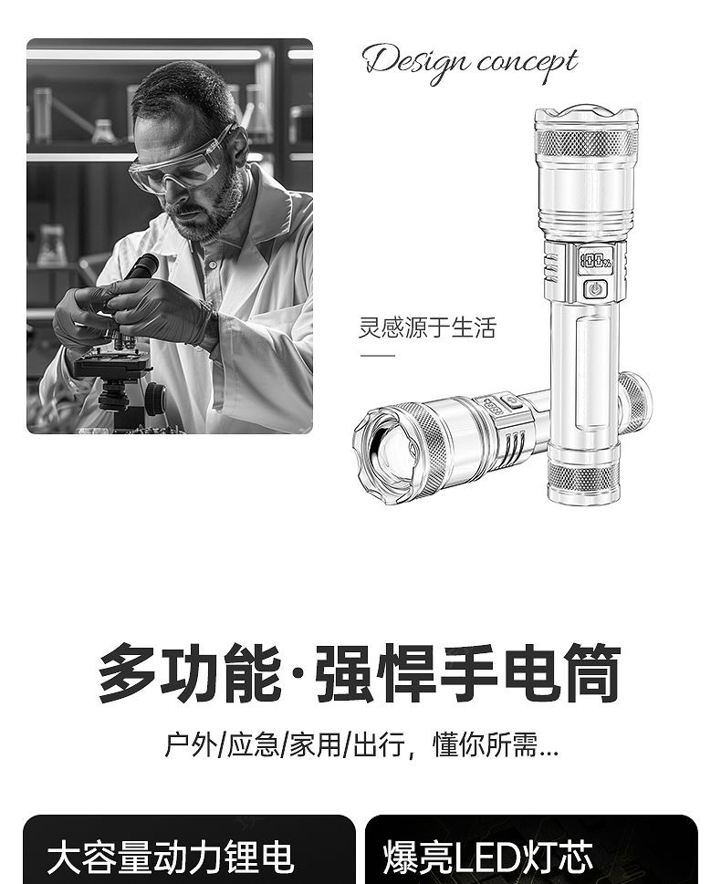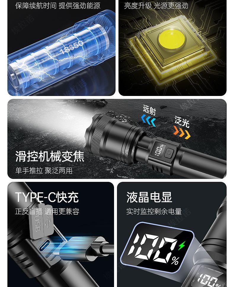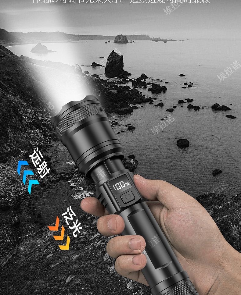 손전등 휴대용 충전식 슈퍼 밝은 야외 줌 장거리 수명 led 레이저