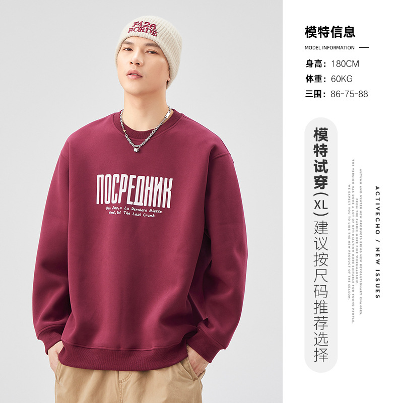 남성용 420G 헤비웨이트 아메리칸 스타일 루즈핏 스웨트셔츠 남성 봄 가을 신상 무캡 프린트 라운드넥 상의스토어 가기