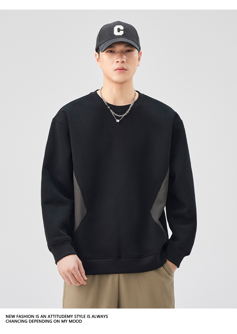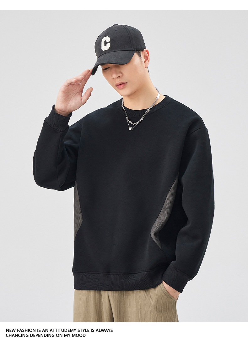 또한 남성용 미국 복고풍 긴 소매 스웨터 남성용 가을 새로운 틈새 디자인 대비 컬러 스티칭 크루 넥 탑