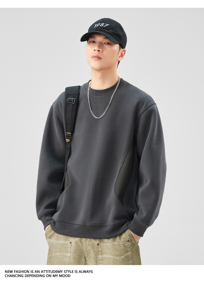 또한 남성용 미국 복고풍 긴 소매 스웨터 남성용 가을 새로운 틈새 디자인 대비 컬러 스티칭 크루 넥 탑스토어 가기