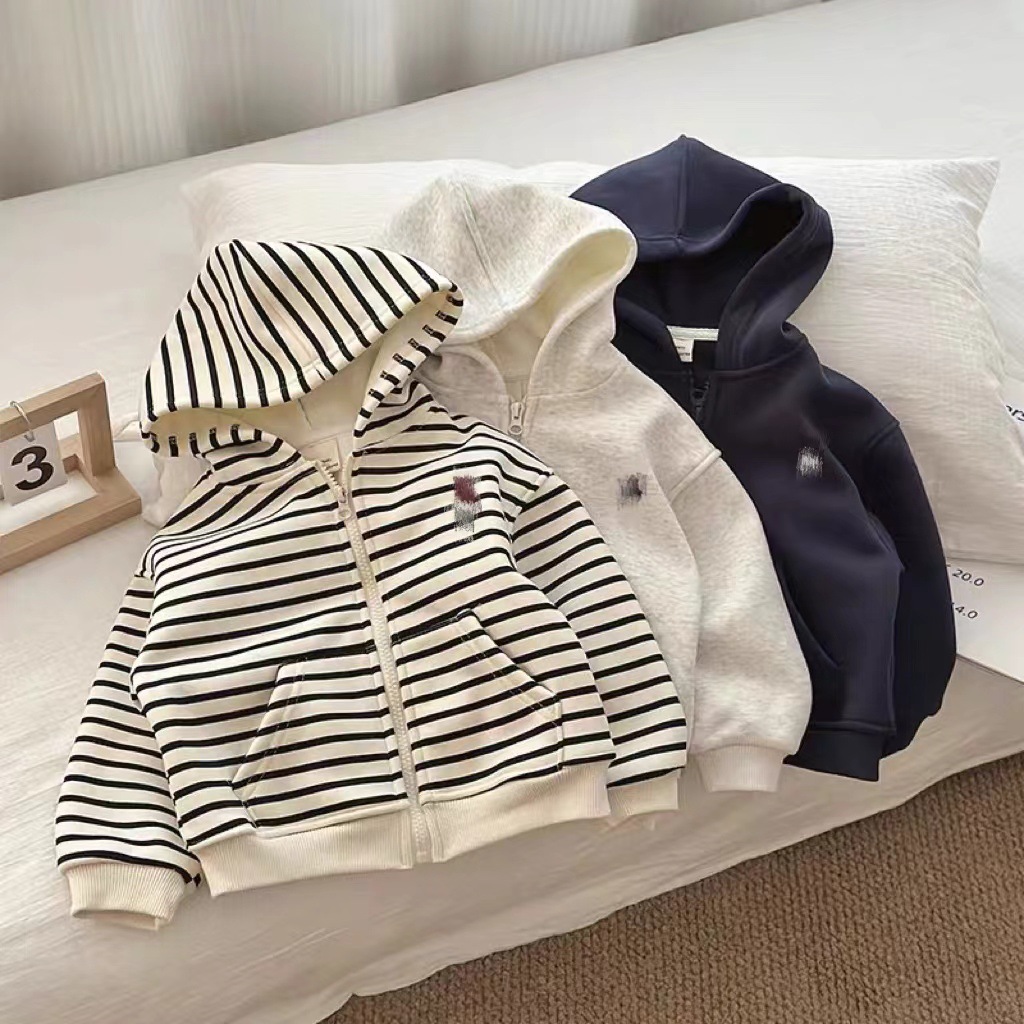 남학생과 여학생을 위한 새로운 봄, 가을 인기 스트라이프 스웨트셔츠, 새로운 아동용 후드 가디건, 다용도 상의, 단색 재킷스토어 가기